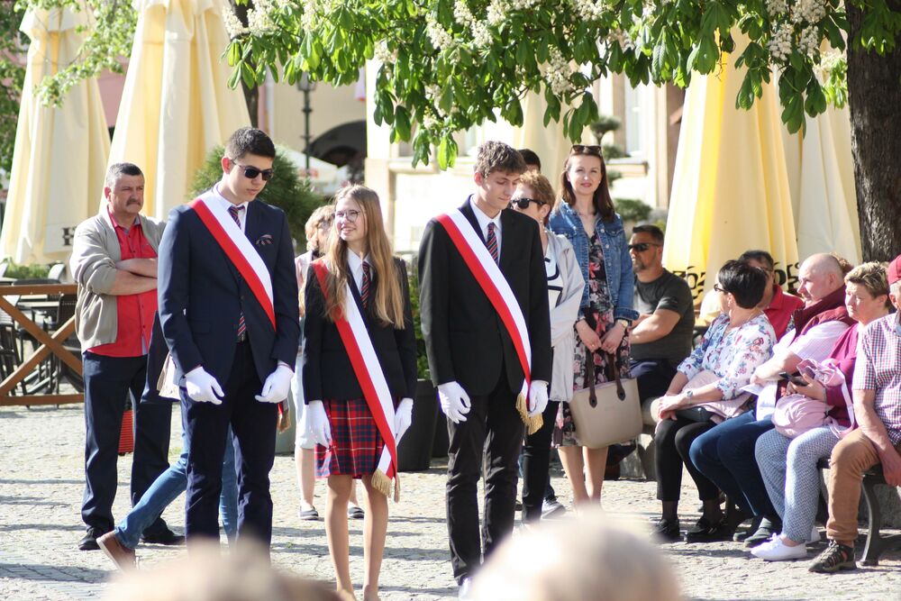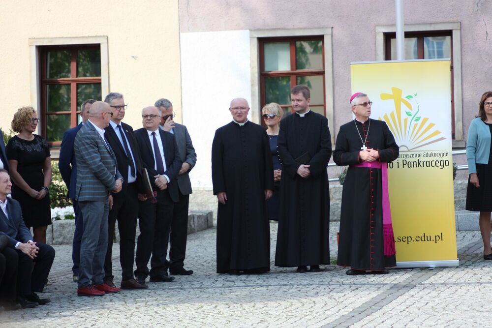 Uroczyste obchody X-lecia naszej szkoły rozpoczęliśmy o 17:00 na Placu Ratuszowym w Jeleniej Górze. Zgromadziliśmy się tłumnie wraz z naszymi rodzicami. Całość rozpoczął Ksiądz Dyrektor, który przywitał nas i podziękował wszystkich dobroczyńcom. Przemawiali również: Bp Andrzej Siemieniewski, senator Krzysztof Mróz, Pan Julian Pyrzanowski, Pan Janusz Łyczko - zastępca Prezydenta Miasta Jelenia Góra.