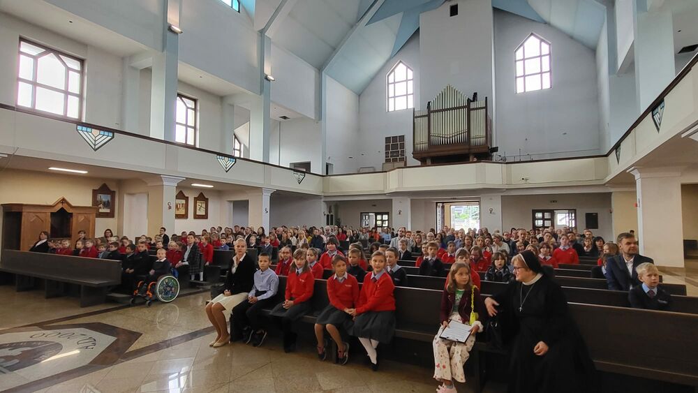 O godz. 9:00 rozpoczęliśmy Eucharystię w kościele przy ul. PCK 23, następnie odbył się krótki apel po którym udaliśmy się z wychowawcami do klas, aby obejrzeć naszą wyremontowaną szkołę.