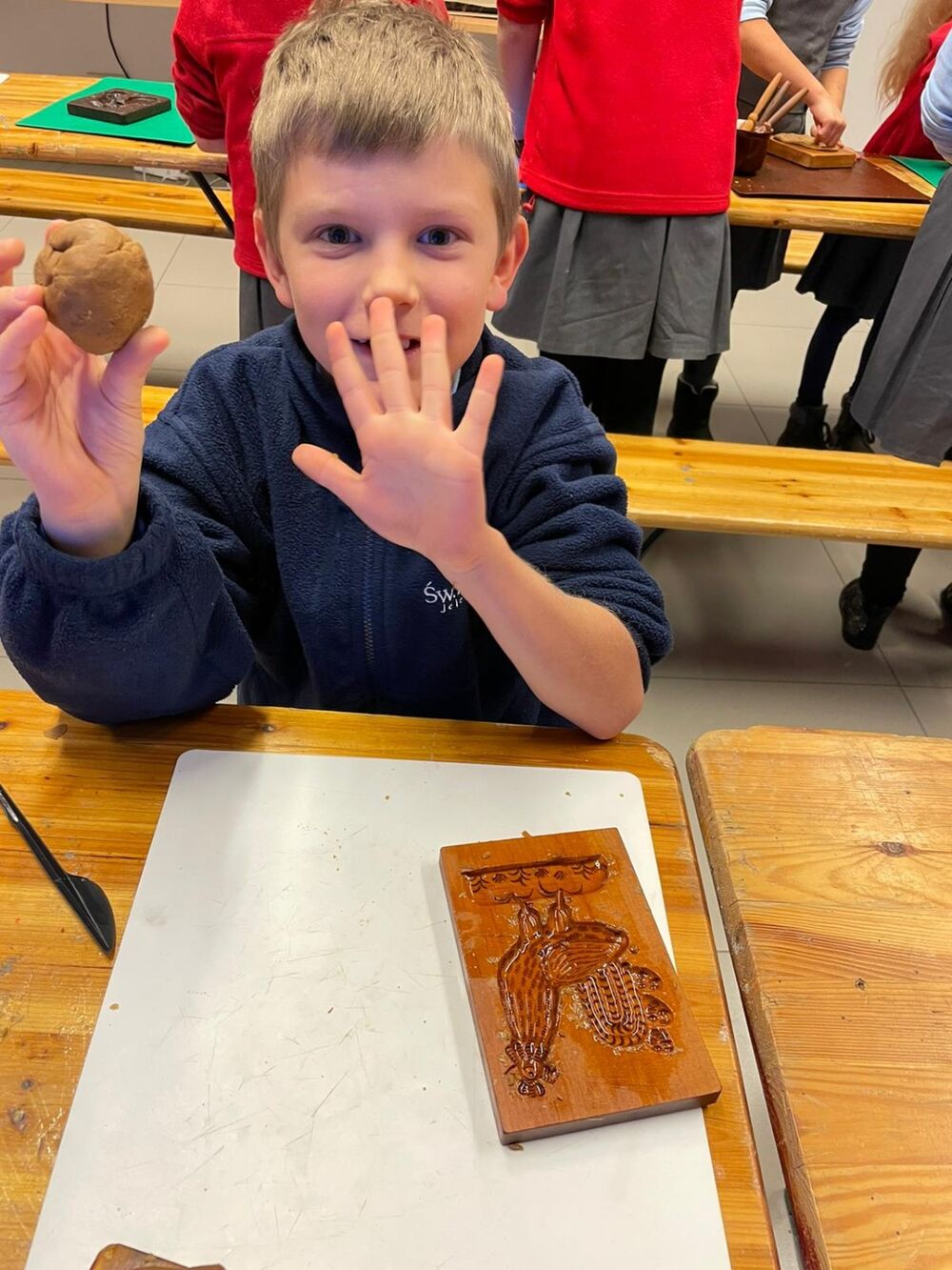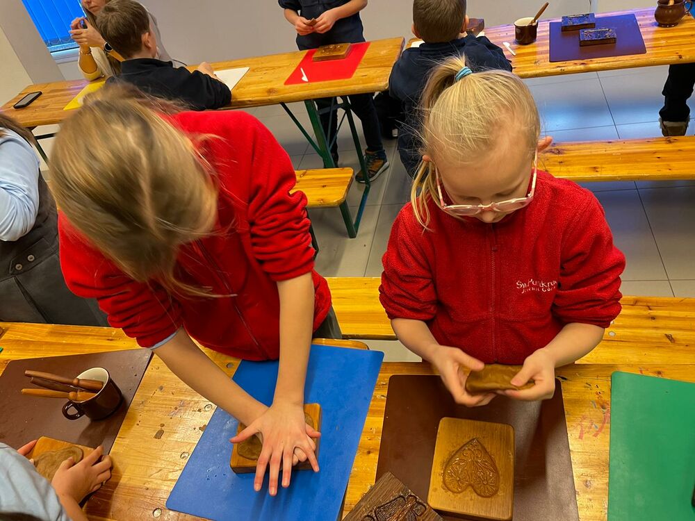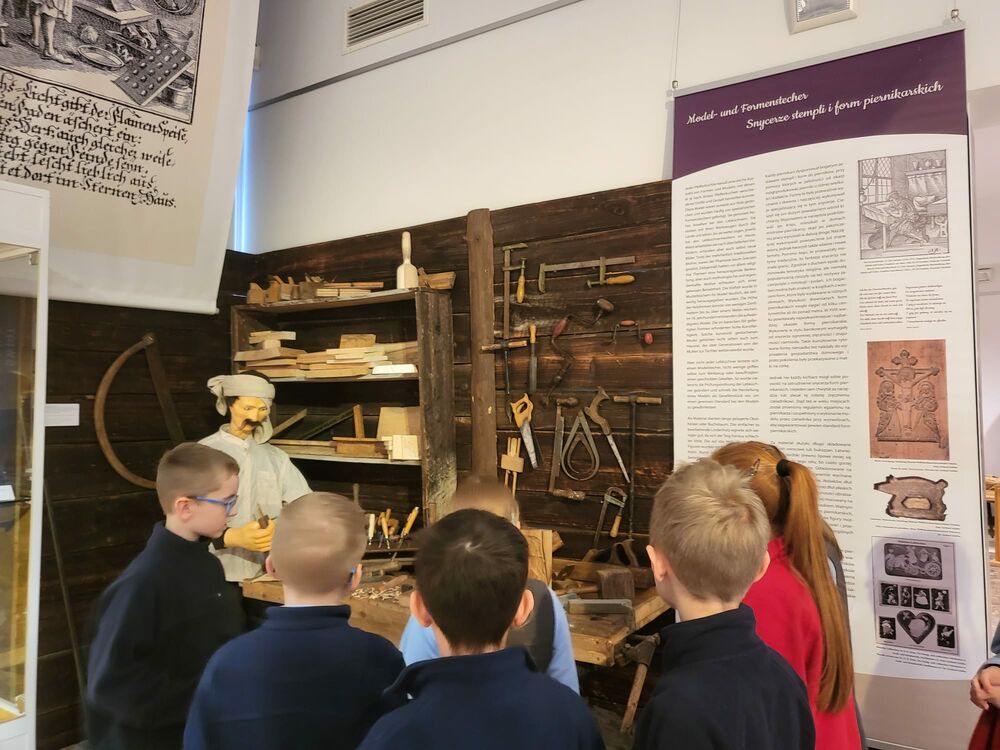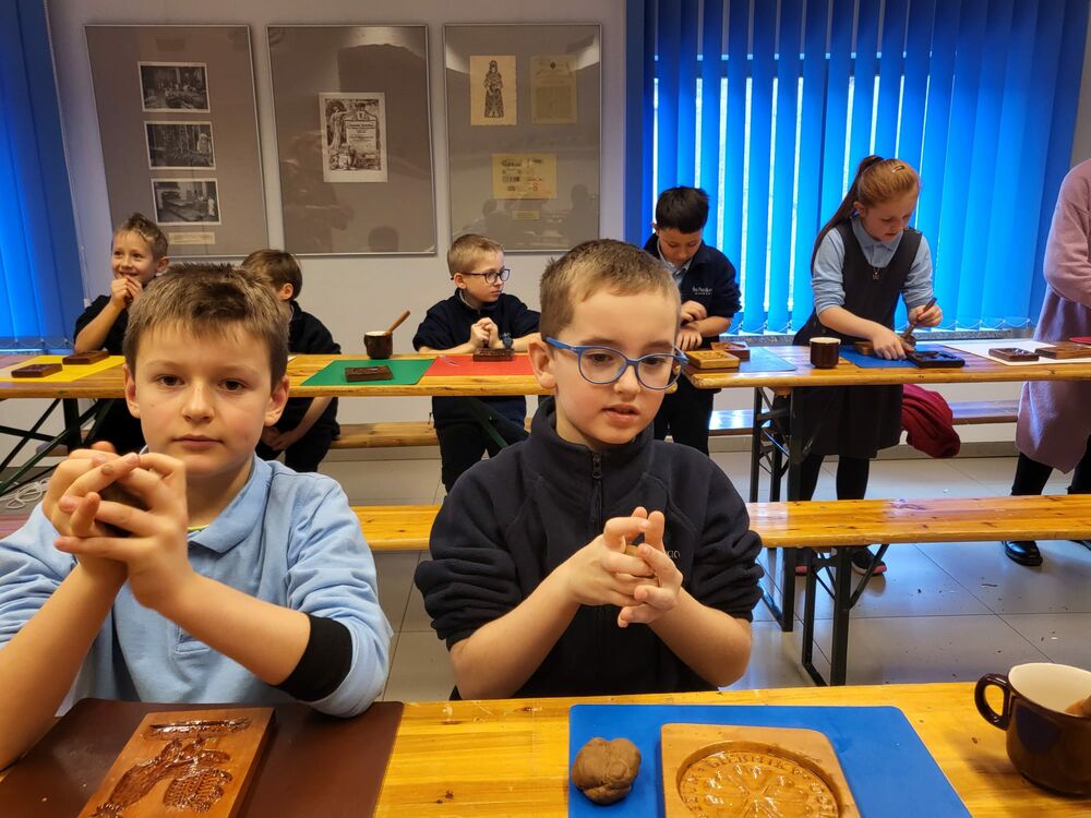 "Na warsztatach robiliśmy pierniczki. Miały one kształty starodawnych form, które rzeźbione były w drewnie. Widzieliśmy również jak trudno było wrzeźbić takie formy. Zwiedzaliśmy eksponaty w muzeum. Bardzo nam się podobało, a pierniczki były piękne i pyszne" ~ Julia Halicka klasa III