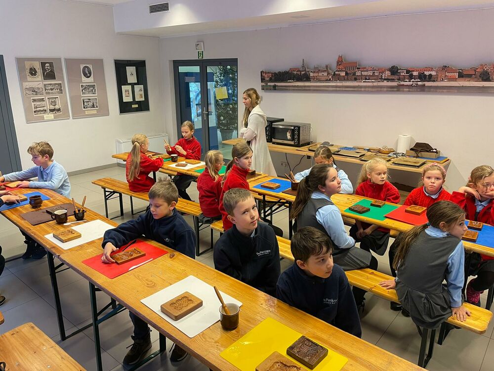 "Robiliśmy pierniczki w starodawnych foremkach. Zwiedzaliśmy także muzeum w którym zobaczyliśmy jak wyglądał dawny sklepik oraz statek, który przywoził przyprawy do pierniczków. Na wystawie widzieliśmy też pierniczki o charakterytycznym kształcie - katarzynki i słuchaliśmy legendy o ich powstaniu." ~ Jagoda Owczarek klasa III