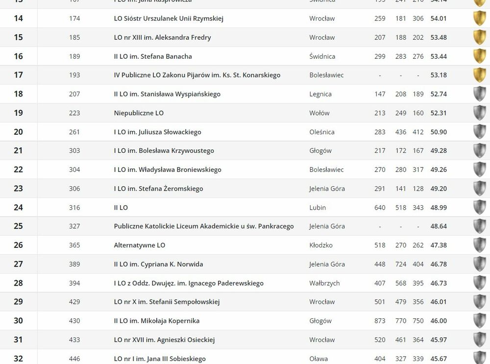 Publiczne Katolickie Liceum Akademickie u św. Pankracego znalazło się w TOP 25 liceów Dolnego Śląska!