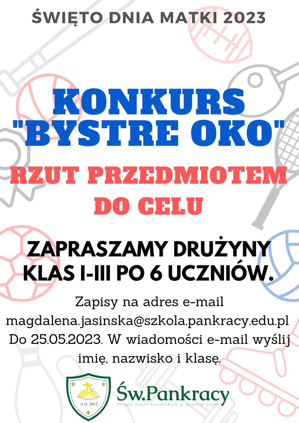 Konkursy odbędą się 28.05.2023 na terenie Publicznej Katolickiej Szkoły Podstawowej u św. Pankracego przy ul. PCK 23.