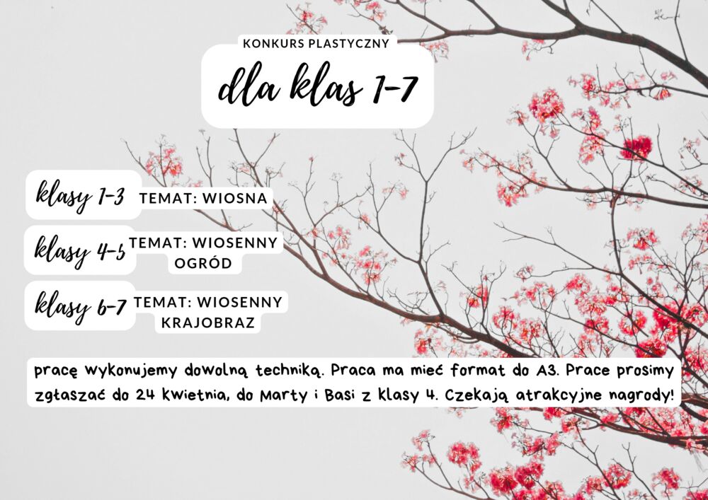 Tematem pracy dla klas 1-3 była wiosna, 4-5 wiosenny ogród, a 6-7 wiosenny krajobraz. Maksymalny rozmiar pracy: A3