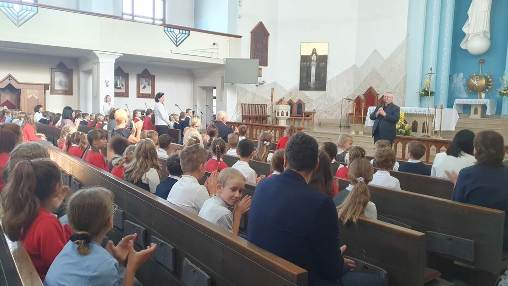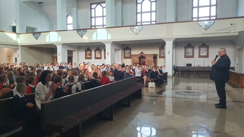 Dziś, 2 września o godzinie 9:00, odbył się apel inauguracyjny dla uczniów klas 1-6 Szkoły Podstawowej, również w Kościele Matki Bożej Miłosierdzia. Rozpoczęliśmy go krótką modlitwą, powierzając Bogu nadchodzący rok szkolny. Następnie przekazano kluczowe informacje dotyczące organizacji roku, po czym uczniowie spotkali się ze swoimi wychowawcami, aby wspólnie rozpocząć nową edukacyjną podróż.