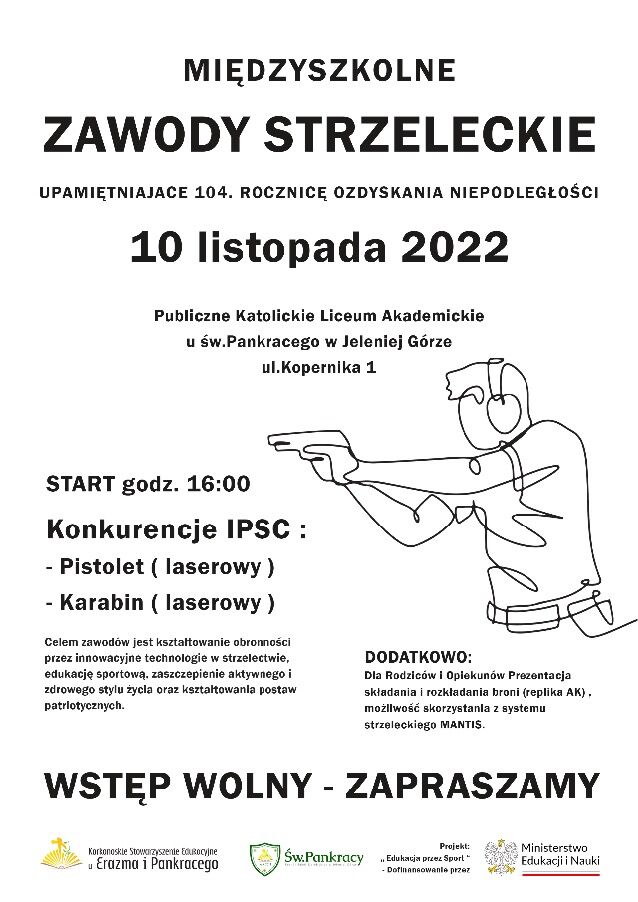Z okazji 104. rocznicy odzyskania niepodległości przez Polskę, Karkonoskie Stowarzyszernie Edukacyjne u Erazma i Pankracego zaprasza na Międzyszkolne Zawody Strzeleckie.
