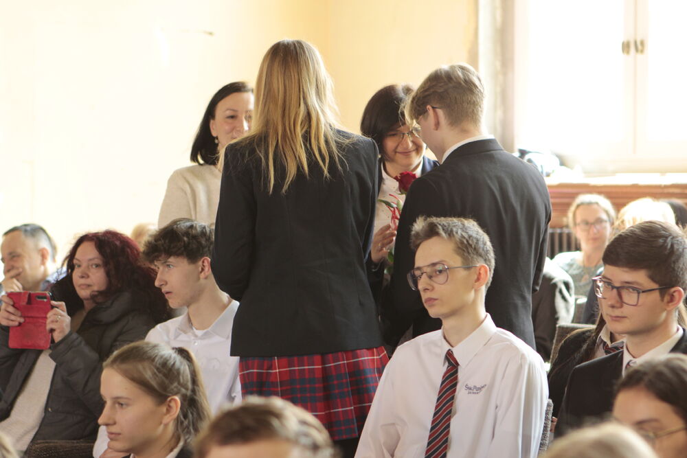 Nie obyło się bez wspomnień, spłynęła niejedna łza, jakże mocne były te ostatnie uściski… Ks. Dyrektor Mariusz Majewski i wychowawczyni pani Magdalena Kamińska wskazali na to, że czas liceum pełny był różnych doświadczeń, wyborów, ale i ciągłego wzrastania, a sami uczniowie ustami Michała Stupnickiego i Emilii Niełacny także pokazali szkolną codzienność swojej klasy 4As – co, to zapamiętali najbardziej, co przeżyli najmocniej.