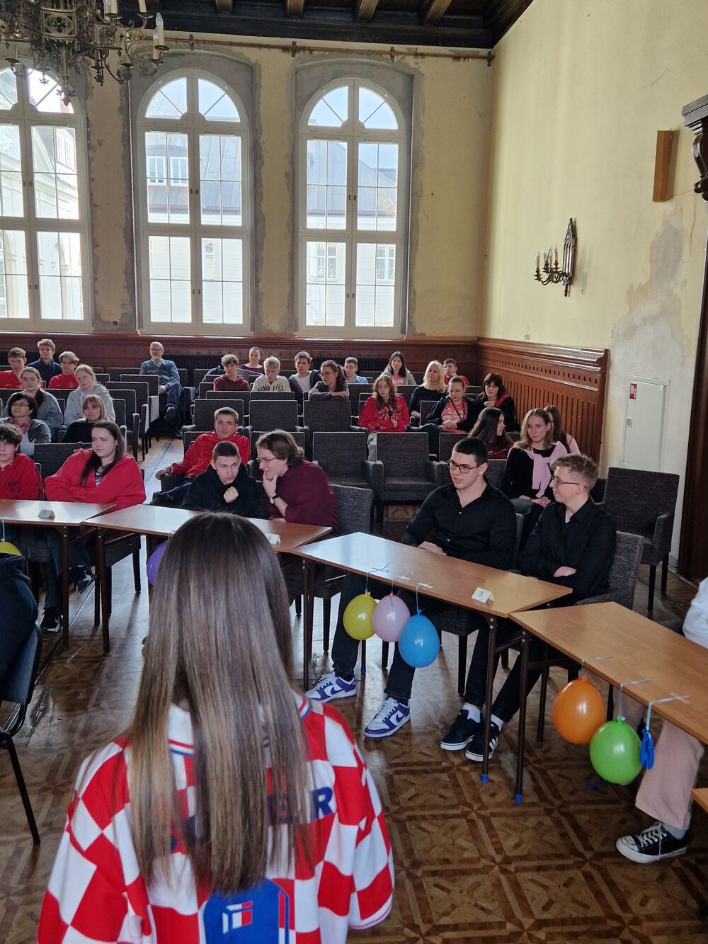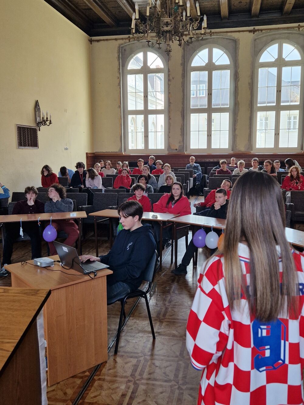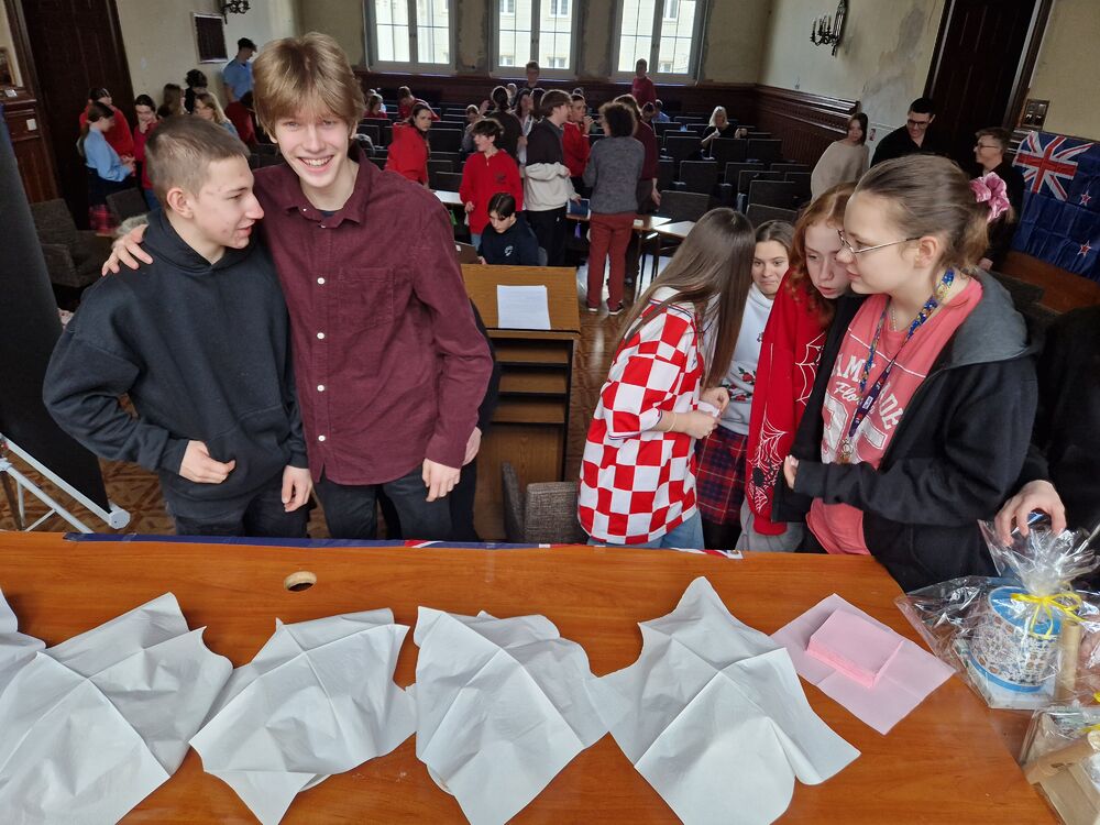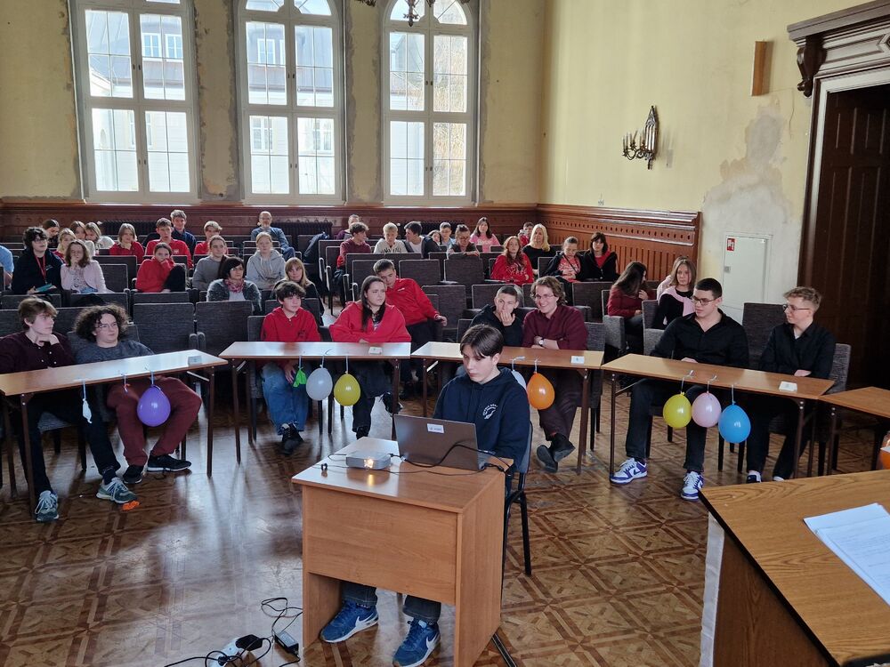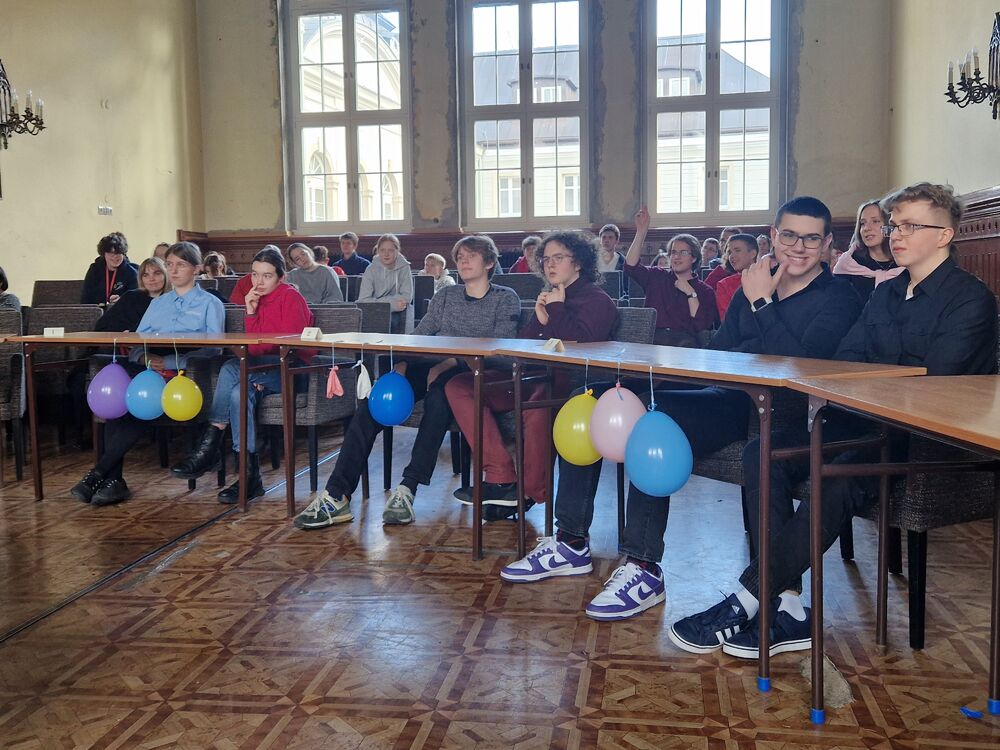 We wtorek 13.02.2024 w naszej Szkole odbył się konkurs języka angielskiego “1 out of 10”, w którym wzięli udział uczniowie klas 1-3 LA. Klasa 3 LA zaangażowała się w przygotowanie auli, a wybrani uczniowie z klasy 2 i 1 LA przeprowadzili konkurs. Rywalizowało ogółem 12 uczniów, z których w drodze eliminacji wyłoniła się finałowa “szóstka”. Po walce w pięknym stylu zwyciężyły uczennice klasy 1 LA Beata Mitońska i Sabina Dworzycka, a drugie miejsce zajęli Jakub Smolarek i Karol Mielniczuk. Publiczność dopingowała uczestników i podpowiadała - szczególną w tym rolę rolę odegrał Mateusz Lisiak. A ponieważ to był ostatni dzień przed Wielkim Postem - nie zabrakło słodkiego poczęstunku.