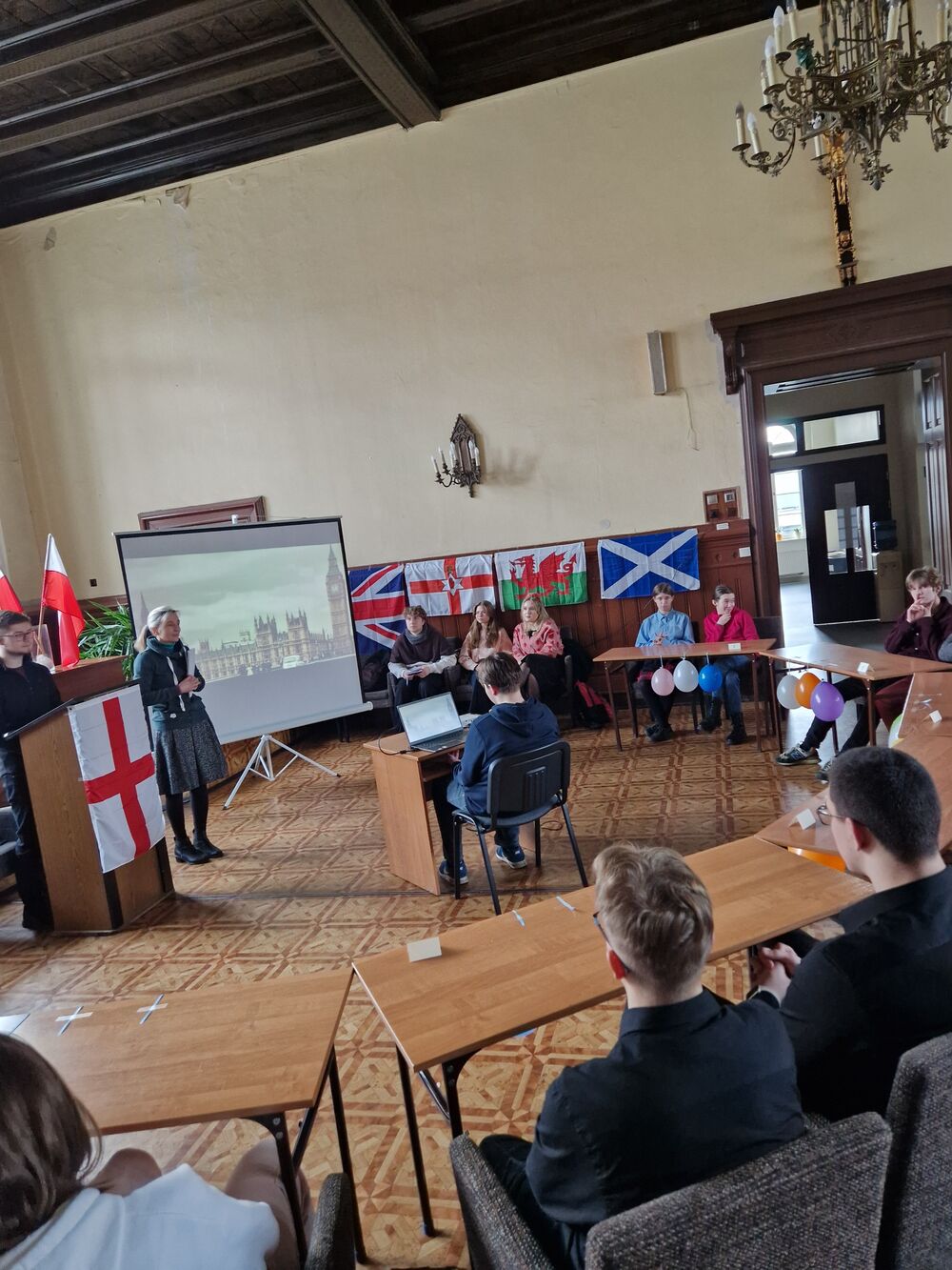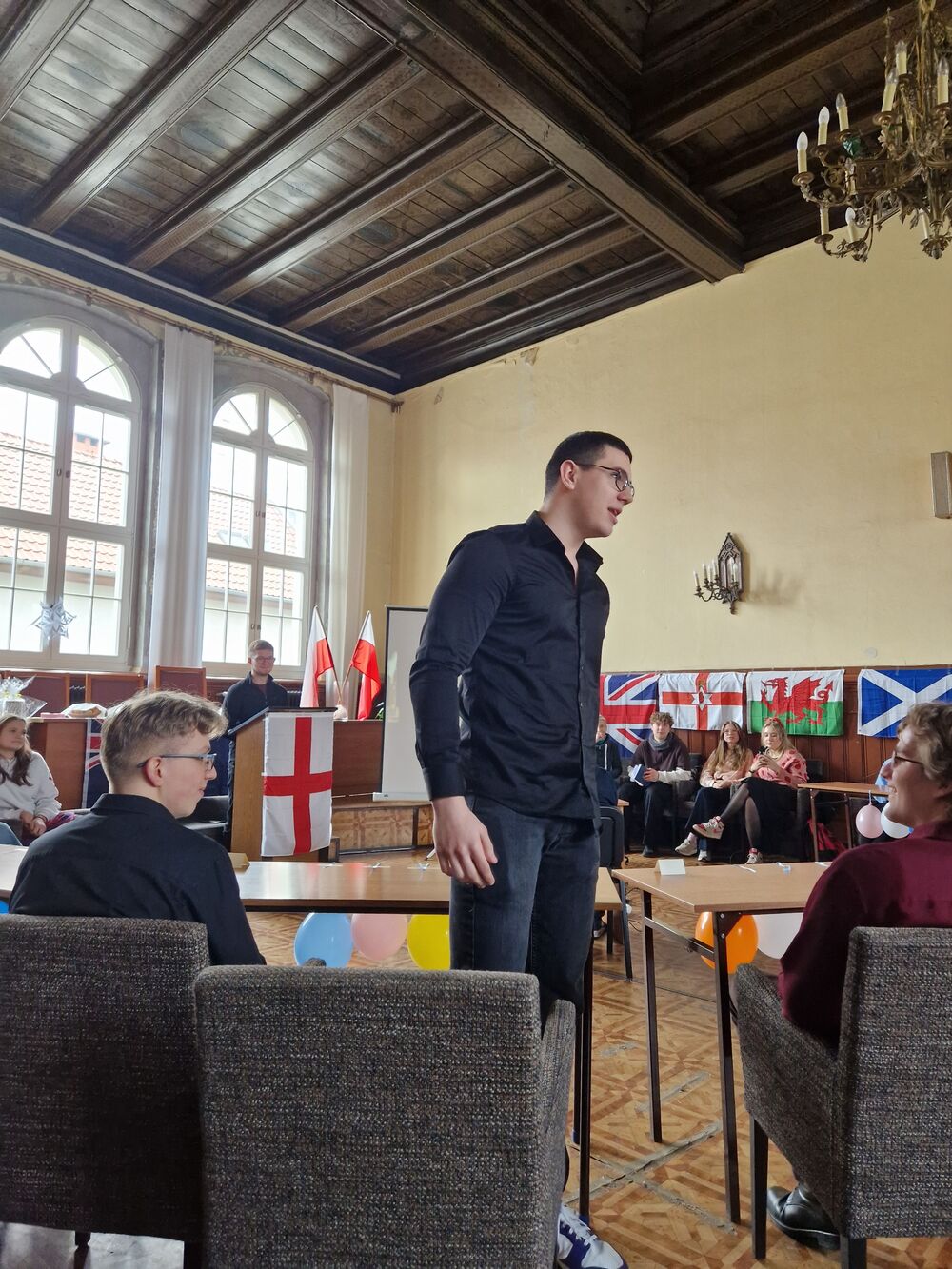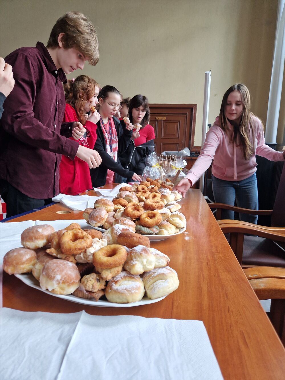 We wtorek 13.02.2024 w naszej Szkole odbył się konkurs języka angielskiego “1 out of 10”, w którym wzięli udział uczniowie klas 1-3 LA. Klasa 3 LA zaangażowała się w przygotowanie auli, a wybrani uczniowie z klasy 2 i 1 LA przeprowadzili konkurs. Rywalizowało ogółem 12 uczniów, z których w drodze eliminacji wyłoniła się finałowa “szóstka”. Po walce w pięknym stylu zwyciężyły uczennice klasy 1 LA Beata Mitońska i Sabina Dworzycka, a drugie miejsce zajęli Jakub Smolarek i Karol Mielniczuk. Publiczność dopingowała uczestników i podpowiadała - szczególną w tym rolę rolę odegrał Mateusz Lisiak. A ponieważ to był ostatni dzień przed Wielkim Postem - nie zabrakło słodkiego poczęstunku.