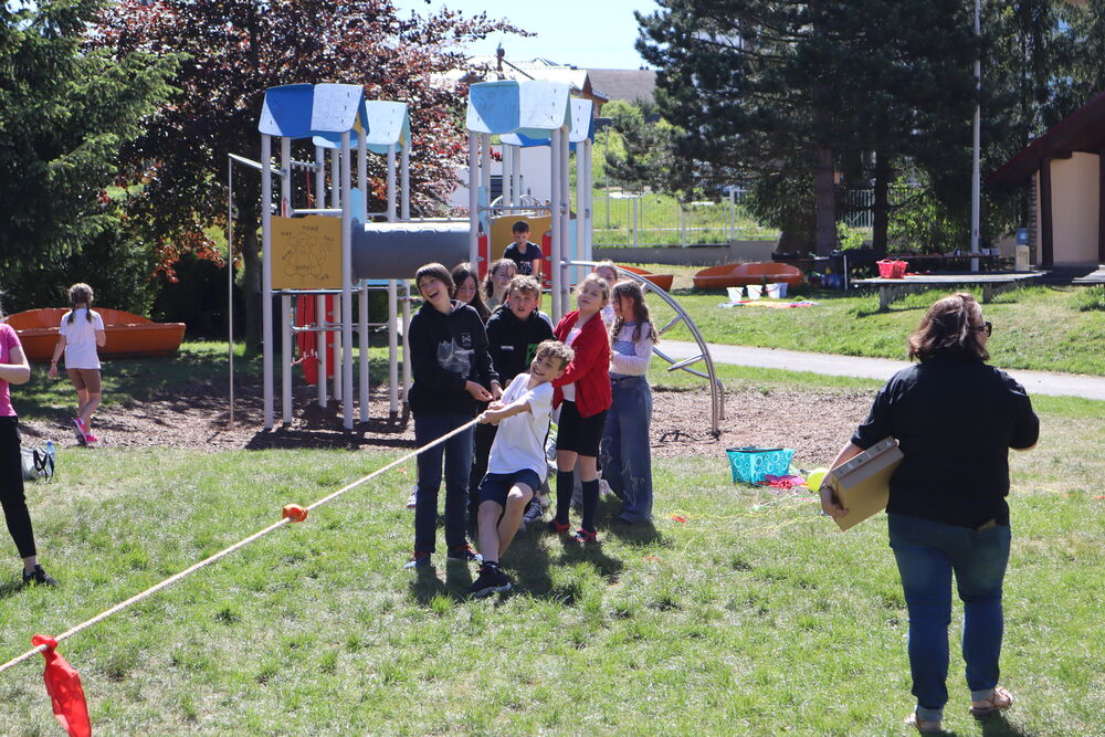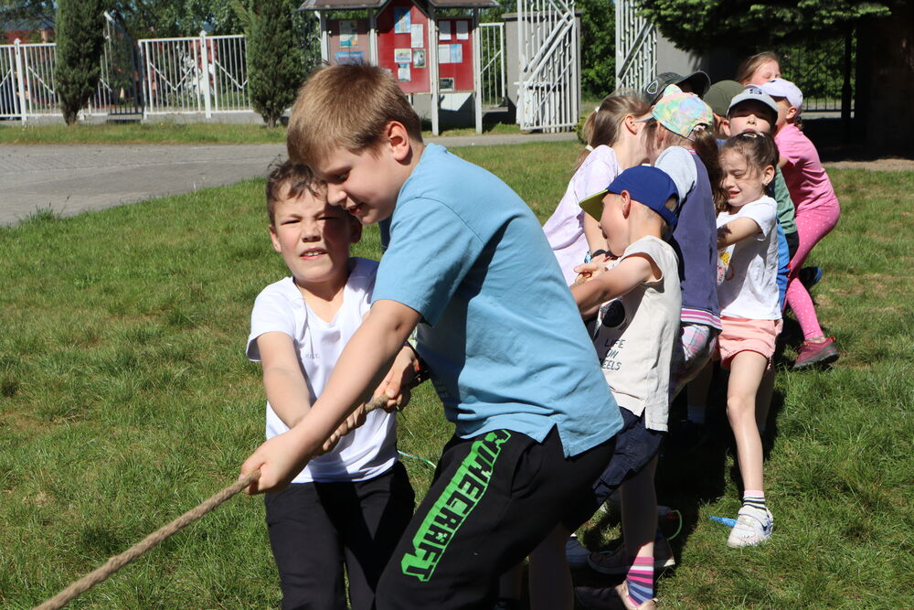 Dzień św. Pankracego w naszej szkole był niezwykle radosnym i pełnym energii wydarzeniem, które zjednoczyło wszystkie klasy od pierwszej do siódmej. Wszyscy uczniowie i nauczyciele z ochotą wzięli udział w pikniku, który rozpoczął się od emocjonujących klasowych zawodów przeciągania liny. Atmosfera była niesamowita, gdyż każda klasa rywalizowała z determinacją i duchem współpracy.