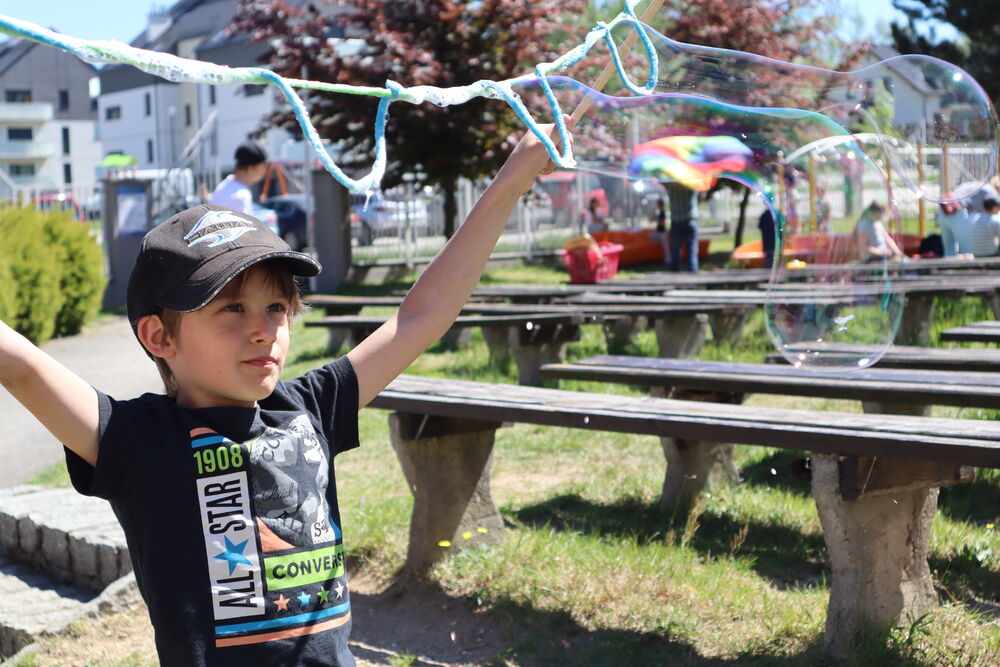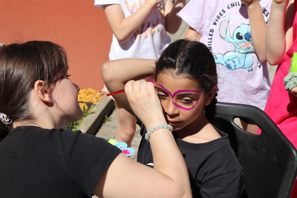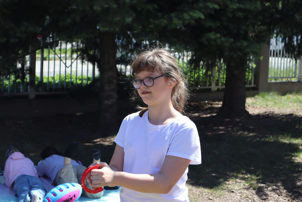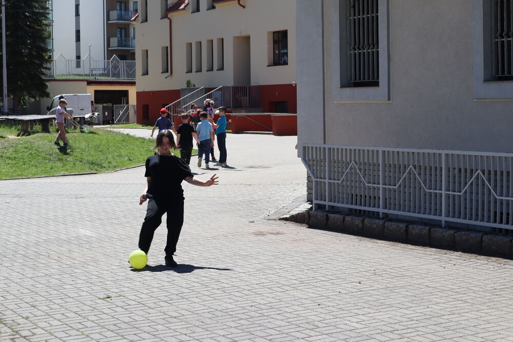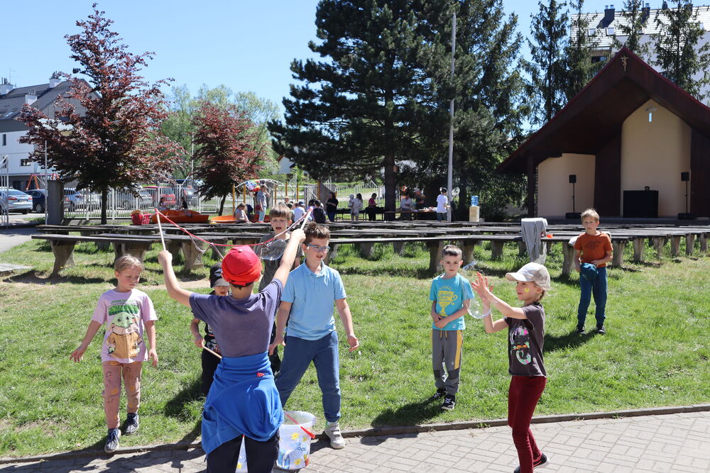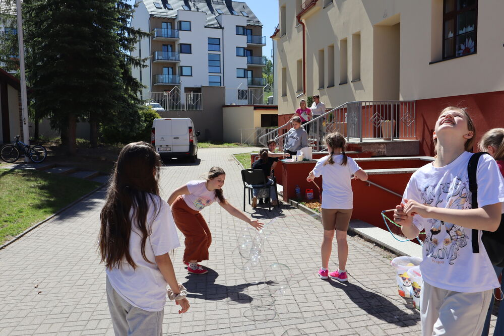Dzieci miały też okazję do wspólnej zabawy podczas puszczania gigantycznych baniek mydlanych, skakania na skakance, rzucania sobie frisbee. Każdy uczeń mógł też skorzystać ze stanowiska malowania twarzy, gdzie nasze nauczycielki tworzyły uczniom na policzkach arcydzieła!