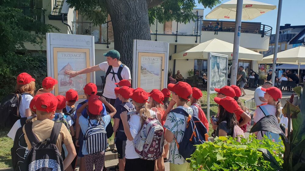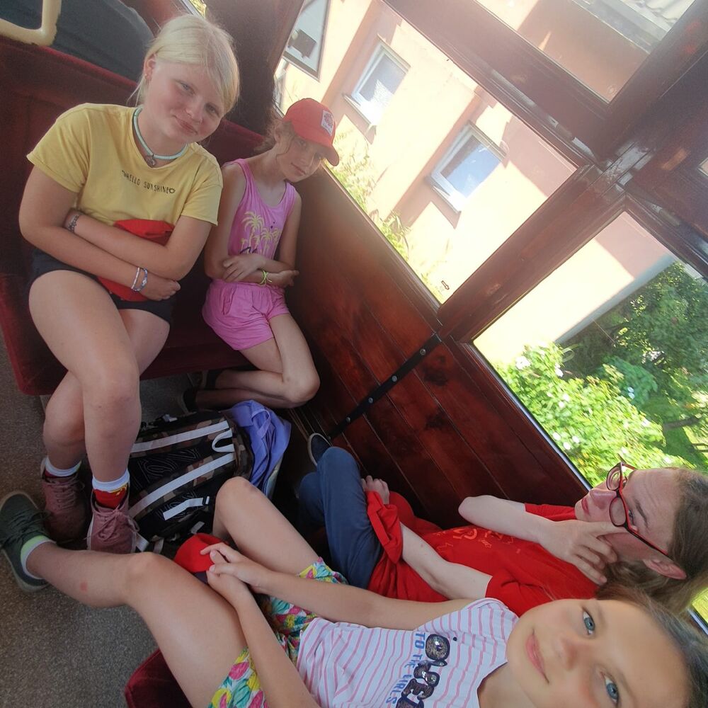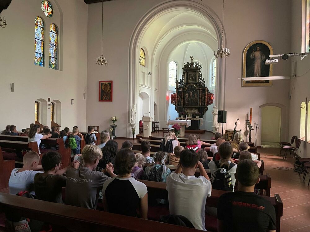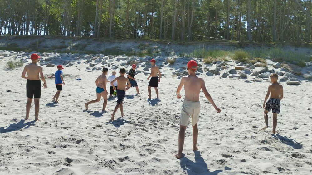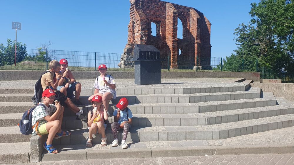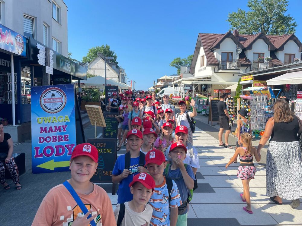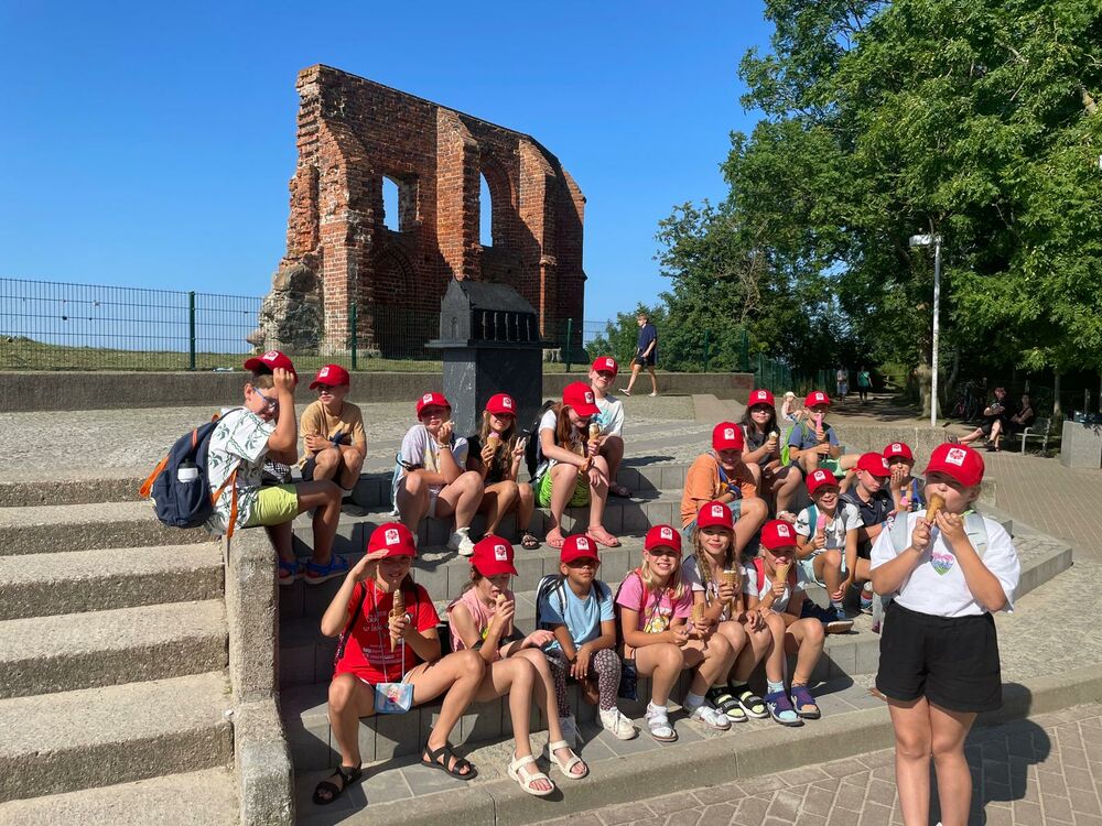 Kolejny piękny dzień za nami. Rozgrzewka, śniadanie, sprzątanie pokojów, wraz ze standardową kontrolą przeprowadzaną przez komisję czystości, a później plażowanie. Dzisiaj pogoda nam naprawdę dopisała, dlatego korzystaliśmy z uroków gorącego piasku i całkiem ciepłej wody morskiej. Po obiedzie ruszyliśmy na wycieczkę do Trzęsacza, a dotarliśmy tam kolejką wąskotorową! W samym Trzęsaczu, o godzinie 15, nawiedziliśmy na krótką modlitwę kościół pw. Miłosierdzia Bożego. Następnie odwiedziliśmy słynne ruiny kościoła pw. św. Mikołaja. Byliśmy też w Muzeum Multimedialnym, w którym mogliśmy doświadczyć historii Trzęsacza. Nie zabrakło również czasu na lody!