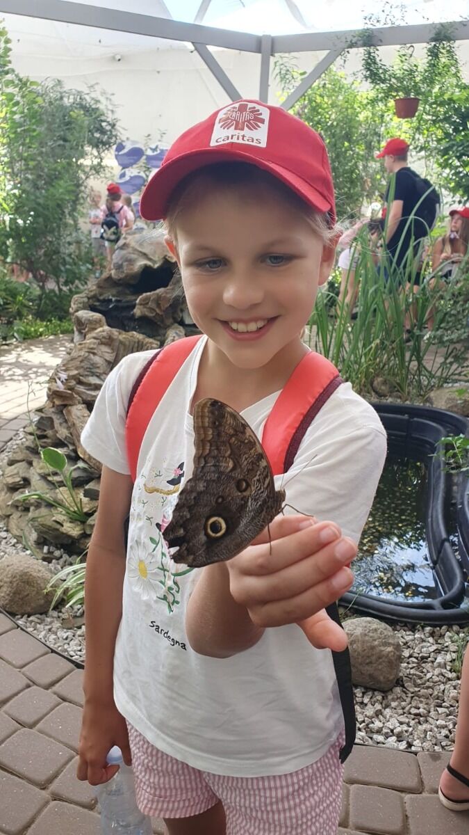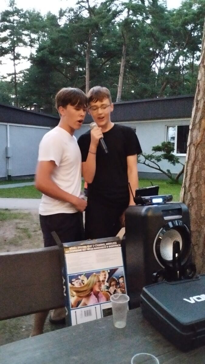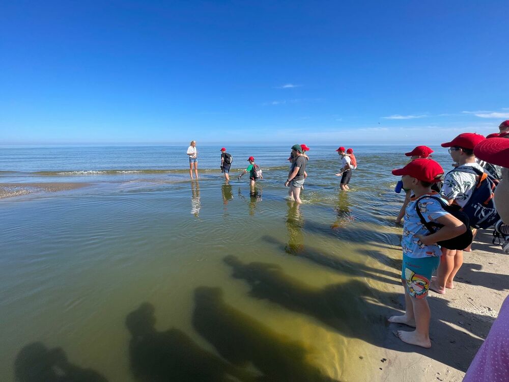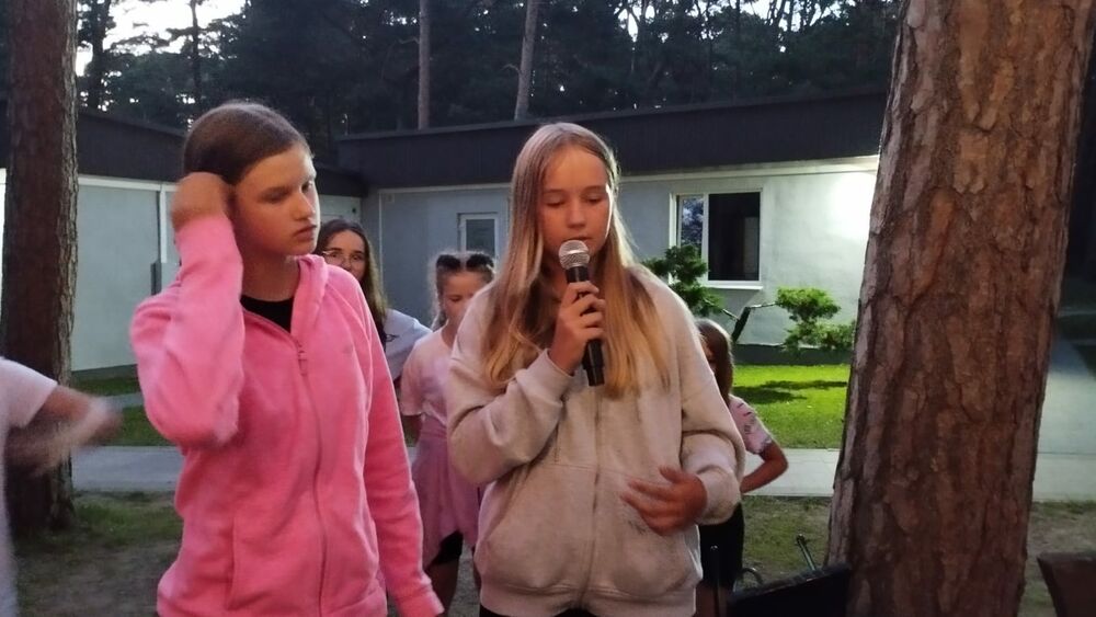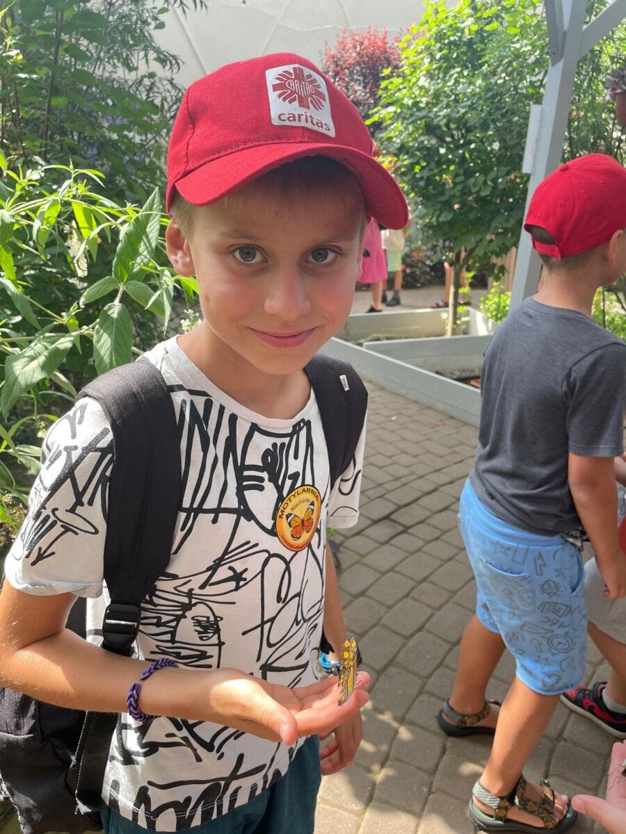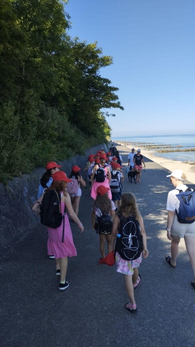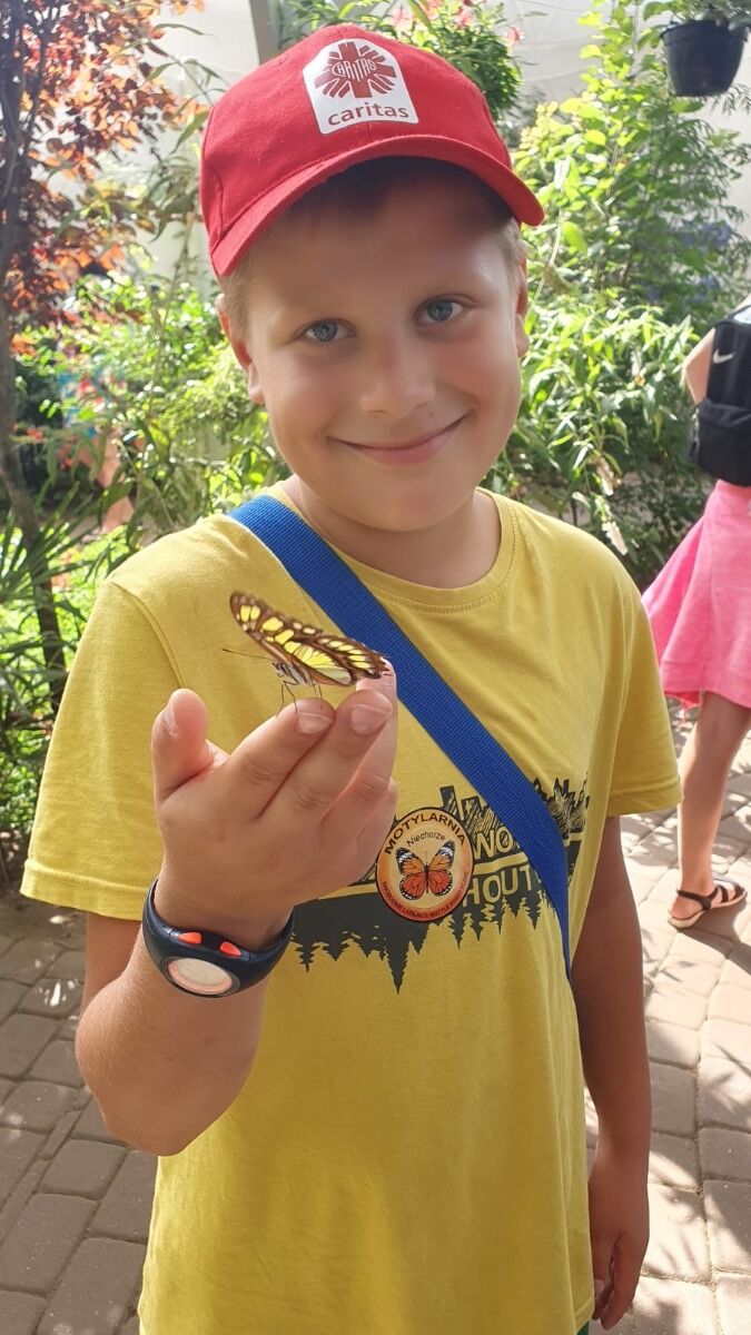 Pogoda nam dopisywała cały dzień. Rano, wyjątkowo, nie zaczynaliśmy od rozgrzewki, bo od razu po śniadaniu udaliśmy się na spacer - 4 km brzegiem Morza. Naszym celem była motylarnia w Niechorzu, ale na naszej drodze natrafiliśmy na przeszkodę. Rzeczka, którą wcześniej pokonywaliśmy bezproblemowo, wezbrała tak, że nasi najwyżsi uczestnicy musieli pomagać najmniejszym w przeprawie. Ta wyjątkowa przygoda jeszcze ściślej zintegrowała naszą grupę i pokazała nam, że dla naszej ekipy nie ma przeszkód, których nie moglibyśmy pokonać. Po motylarnii mieliśmy chwilę na zakupy pamiątek oraz na lody. Po powrocie obiad i cisza poobiednia. Popołudniu już tylko relaks na plaży. Graliśmy w piłkę, pływaliśmy w Morzu, graliśmy w gry karciane, czytliśmy książki, puszczaliśmy latawce - po prostu świetnie spędzaliśmy czas. Po kolacji było ognisko, przy którym śpiewaliśmy z towarzyszeniem gitary najlepsze hity. Piekliśmy też kiełbaski. Po jedzeniu odbył się jeszcze I Kolonijny Turniej Karaoke. Później to już tylko kąpiel i spanko. Dobrego dnia wszystkim!