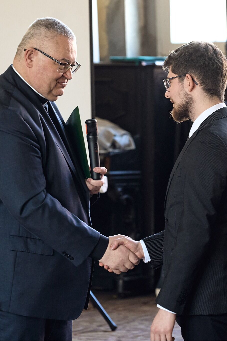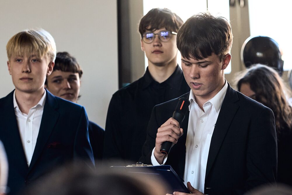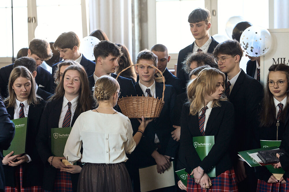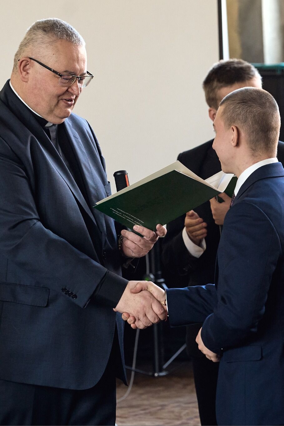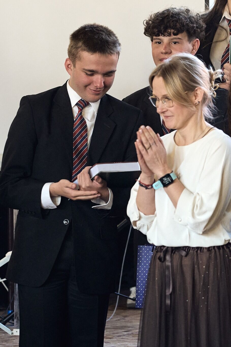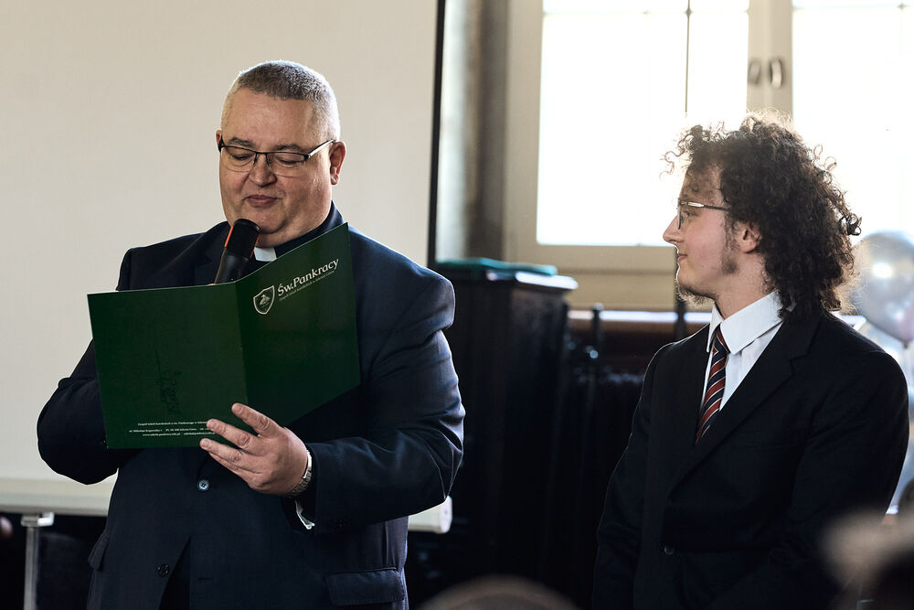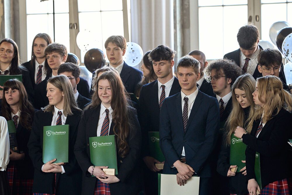 Do abiturientów zwrócił się Ksiądz Dyrektor dr Mariusz Majewski, gratulując im dojrzałości i życząc odwagi w dorosłym życiu. Nie zabrakło też akcentu humorystycznego – klasa 3As wystąpiła z piosenką oraz zabawnym „spojrzeniem z boku” na swoich starszych kolegów, co było świetnym dopełnieniem uroczystości.