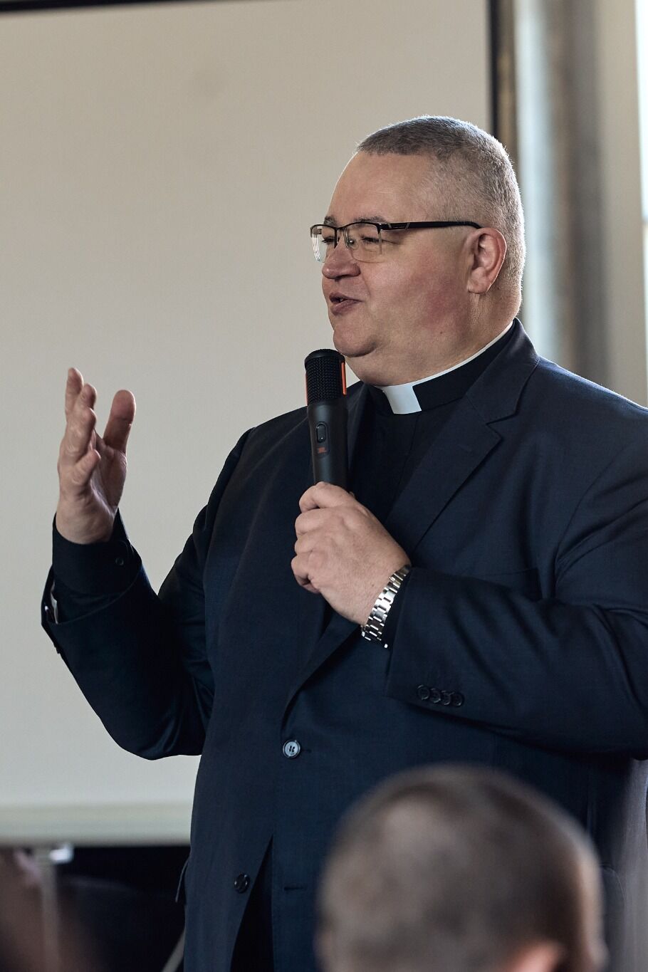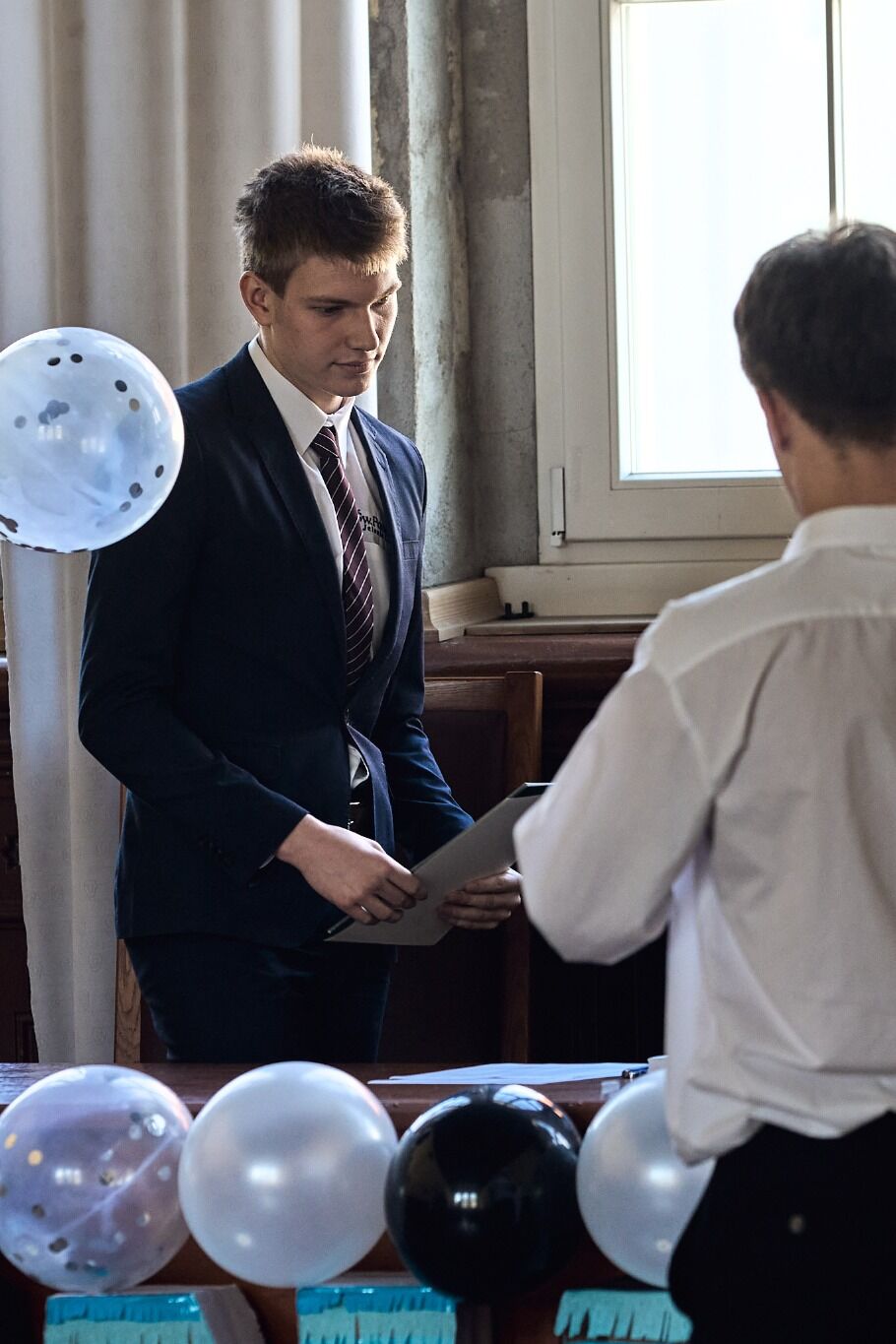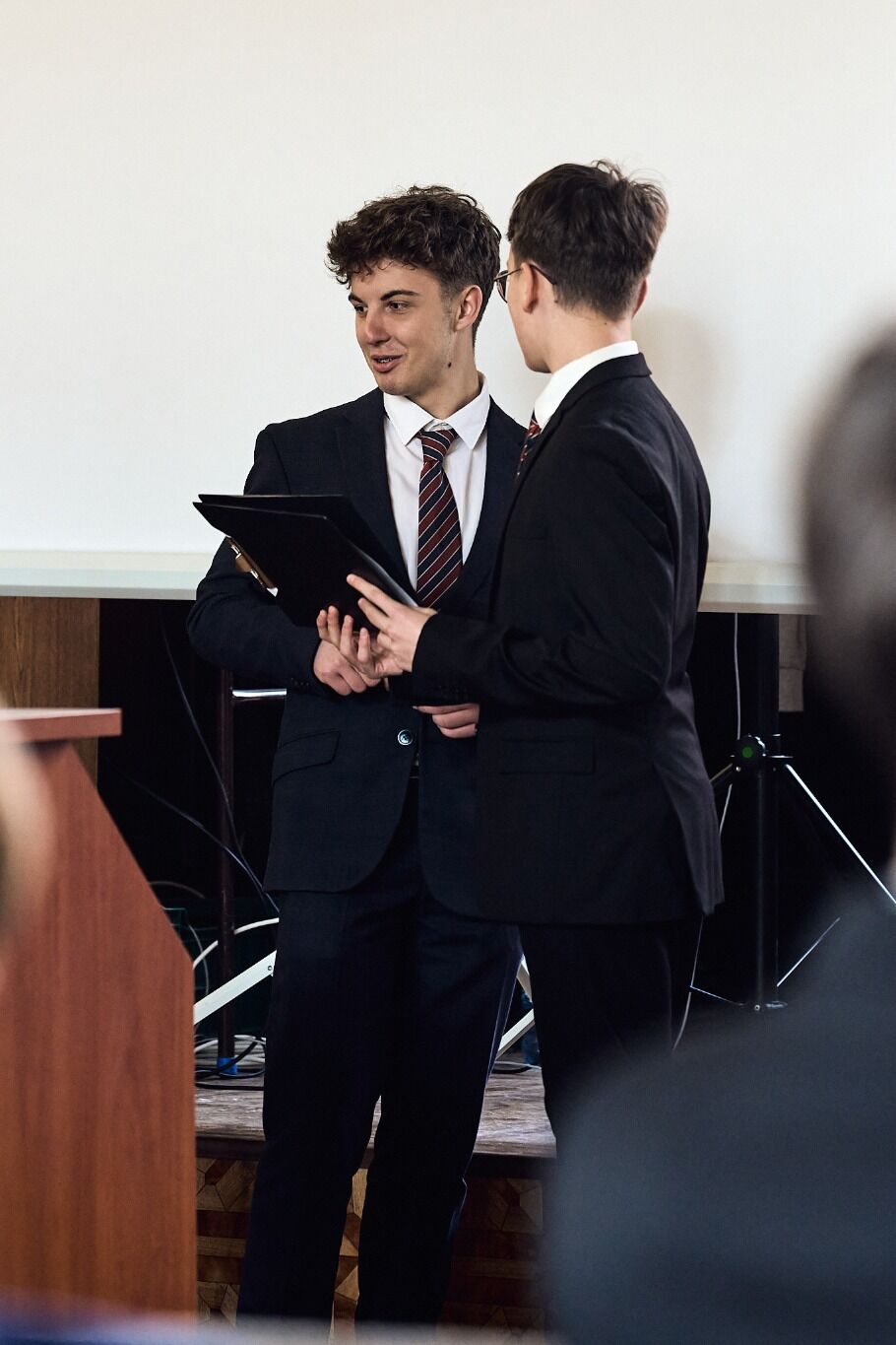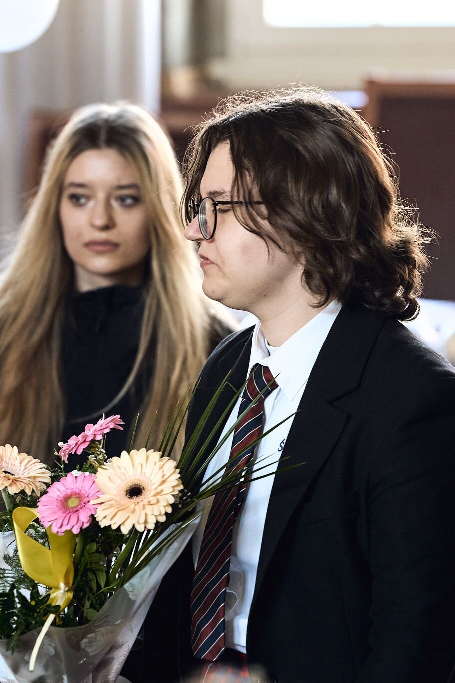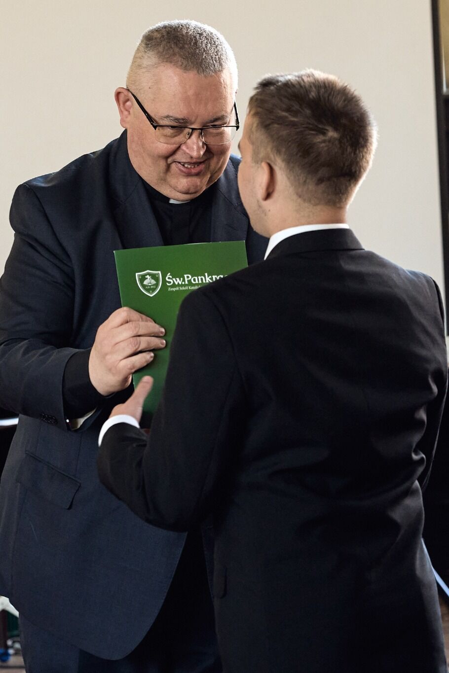 Do abiturientów zwrócił się Ksiądz Dyrektor dr Mariusz Majewski, gratulując im dojrzałości i życząc odwagi w dorosłym życiu. Nie zabrakło też akcentu humorystycznego – klasa 3As wystąpiła z piosenką oraz zabawnym „spojrzeniem z boku” na swoich starszych kolegów, co było świetnym dopełnieniem uroczystości.