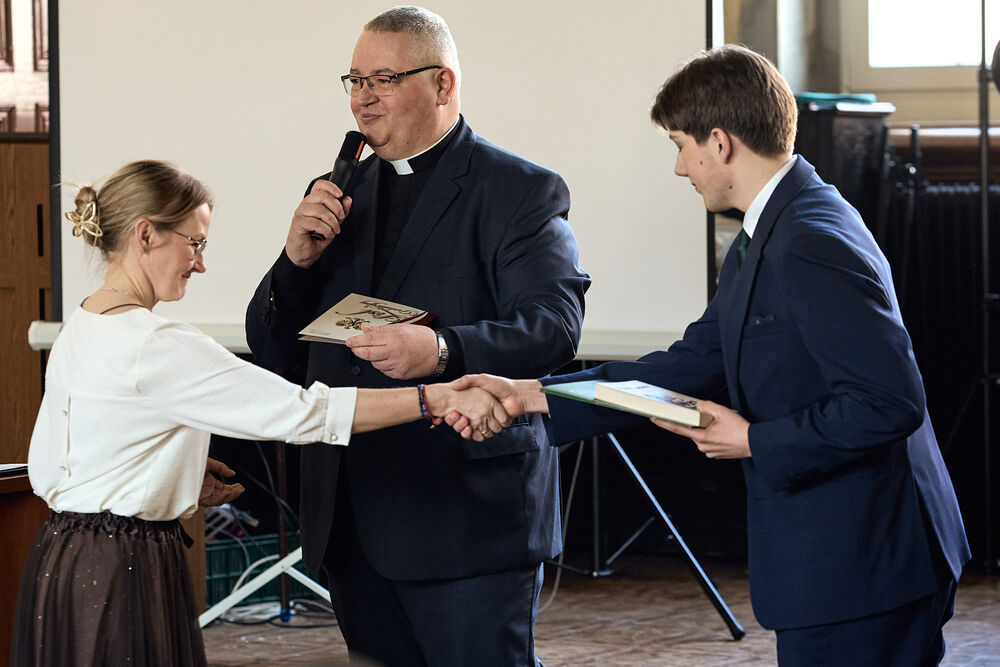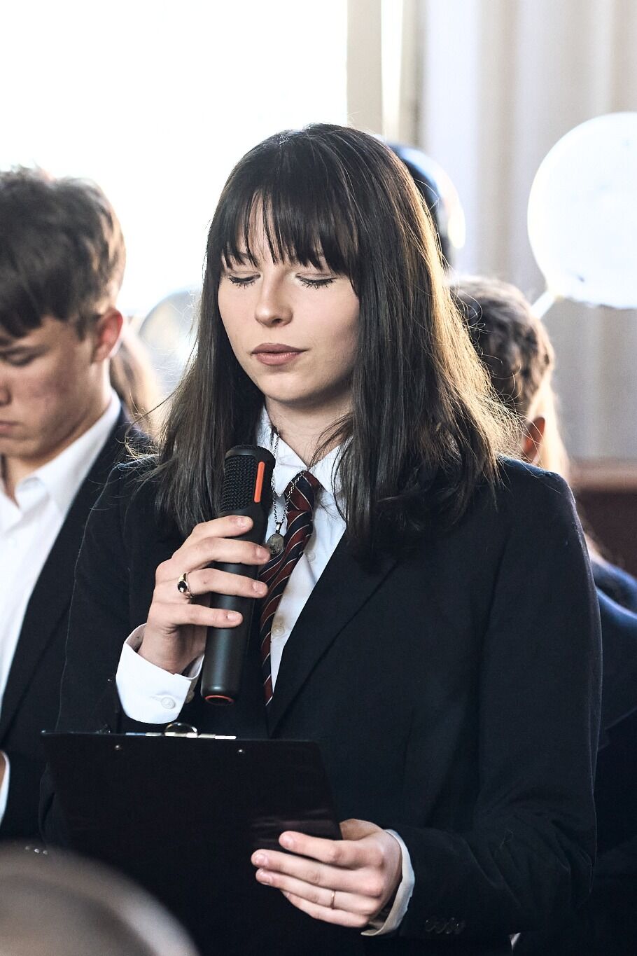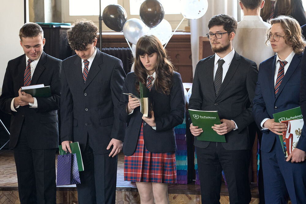 Uroczystość rozpoczęliśmy wspólną Mszą Świętą, dziękując za minione lata nauki i prosząc o pomyślność na nadchodzącym egzaminie dojrzałości. Następnie wszyscy zgromadzeni przenieśli się do auli szkoły, gdzie odbyła się oficjalna część wydarzenia.