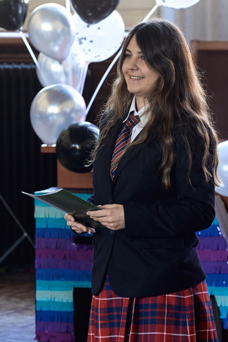 Moment wręczenia świadectw był wyjątkowy, ponieważ każdy uczeń został indywidualnie wyróżniony za swój unikalny wkład w życie klasy i szkoły. Szczególne gratulacje należą się zwycięzcom plebiscytu na Osobowość 4-lecia, którymi zostali: