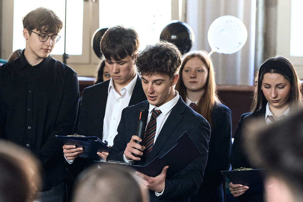 Kluczowym punktem programu była sentymentalna podróż w czasie. Pani Joanna Łazur, wychowawczyni klasy 4As, przygotowała wzruszającą prezentację, która przypomniała najważniejsze momenty z życia klasy. Emocji nie brakowało również podczas projekcji filmu przygotowanego przez samych maturzystów – ich autorskie podsumowanie 4 lat liceum wywołało na sali salwy śmiechu i łzy wzruszenia.