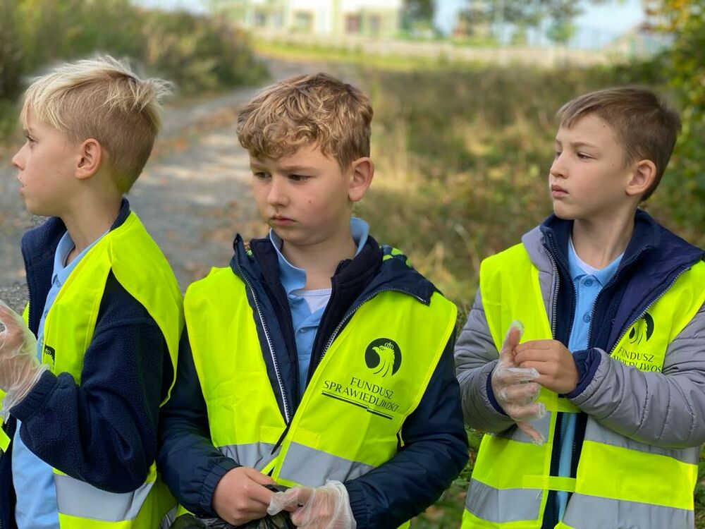 Klasa II a wyruszyła na akcję "Sprzątanie Świata". Za cel wybraliśmy sobie niewielki fragment parku na wzgórzu za naszą szkołą. Nie mogliśmy wyjść ze zdumienia widząc jak wiele śmieci znaleźliśmy na takim małym obszarze! Zachęcamy wszystkich aby dbali o naszą planetę, zarówno dorosłych jak i dzieci! My za zebranie ponad 20 worków śmieci i skonstruuowanie z nich żółwia (symbol tego, że przez nadmiar śmieci te i inne zwierzęta cierpią) otrzymaliśmy pamiątkowy certyfikat i zeszyty wykonanie z papieru recyklingowanego!