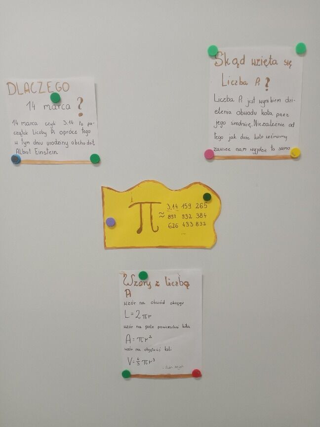 W czwartek 17 marca obchodziliśmy Dzień Liczby Pi. Głównym celem tego wydarzenia było promowanie matematyki oraz rozbudzanie zainteresowań przedmiotem. Na tę okoliczność uczennica klasy 8 Małgorzata Mirek podzieliła się przygotowanymi informacjami na temat historii liczby Pi oraz genezy powstania Dnia Liczby Pi.