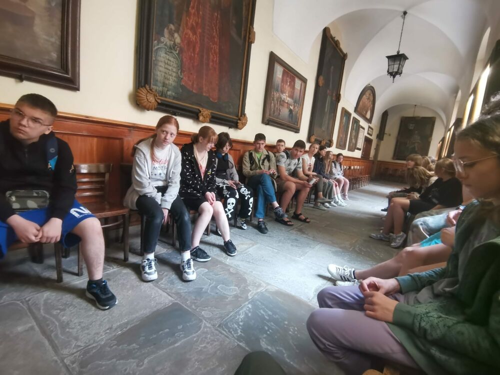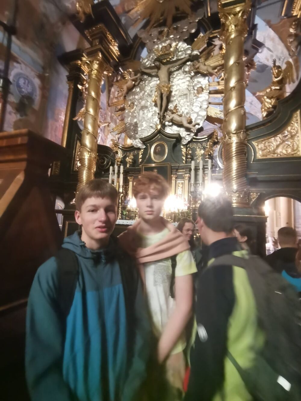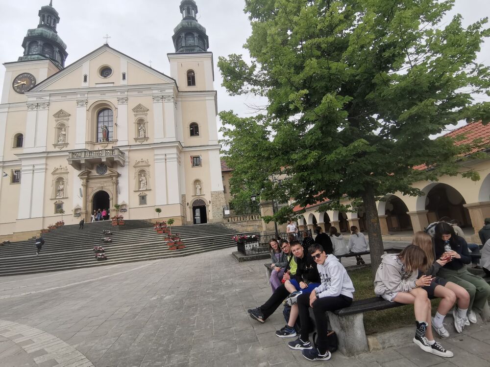 Kolejnym punktem były Wadowice – miasto Jana Pawła II, którego słowa „Musicie od siebie wymagać, choćby inni od was nie wymagali” są mottem naszej szkoły. Tutaj poznaliśmy uliczki i budynki związane z Papieżem, jadąc wadowicką kolejką. Wspólnie z śpiewaliśmy puszczane przez głośnik piosenki. Następnie udaliśmy się do Muzeum Domu Jana Pawła II oraz wadowickiej bazyliki. Po zwiedzaniu był czas wolny, oczywiście na wadowicką kremówkę.