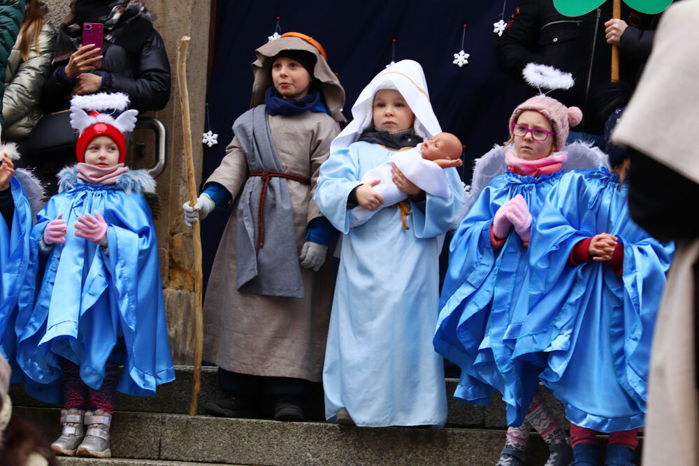 Z tego właśnie zaproszenia skorzystało bardzo wielu mieszkańców naszego regionu. Orszak tradycyjnie przygotowany został przez Karkonoskie Stowarzyszenie Edukacyjne u Erazma i Pankracego we współpracy z Miastem Jelenia Góra. Wydarzenie rozpoczęło się Mszą św. w jeleniogórskiej bazylice św. Erazma i Pankracego, a przewodniczył jej ks. dziekan Bogdan Żygadło. Przy ołtarzu stanęli także: ks. dr Mariusz Majewski i ks. Stanisław Bakes. Po Eucharystii ok. godz. 13:00 na ulice miasta wyruszył wielobarwny i rozśpiewany korowód, by dotrzeć do stajenki usytuowanej na Placu Ratuszowym.