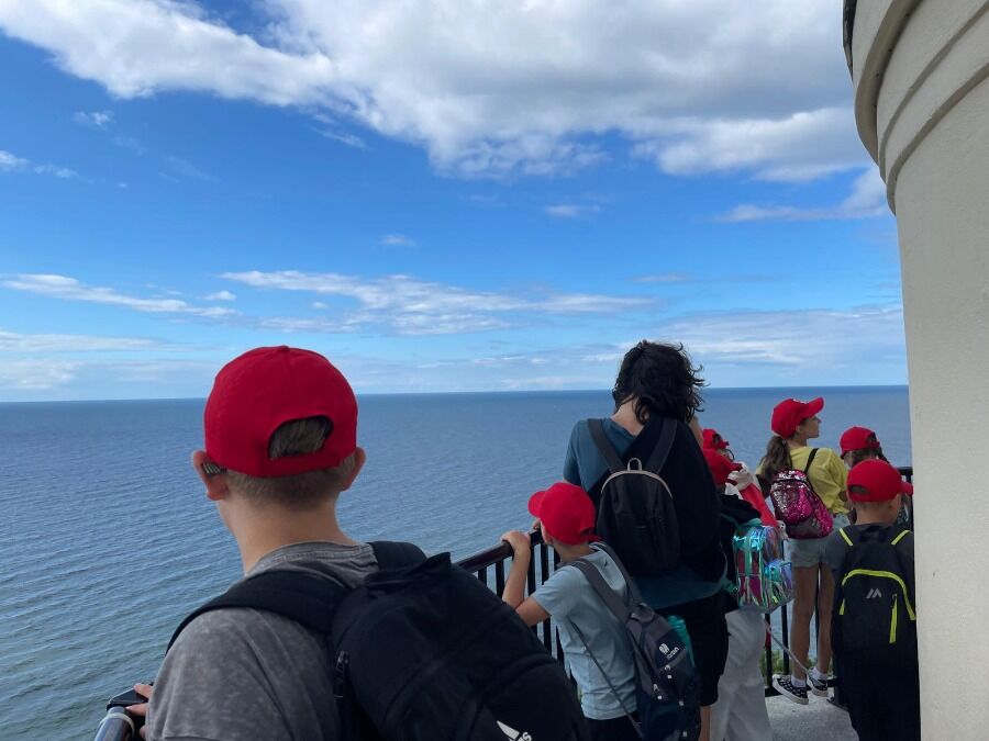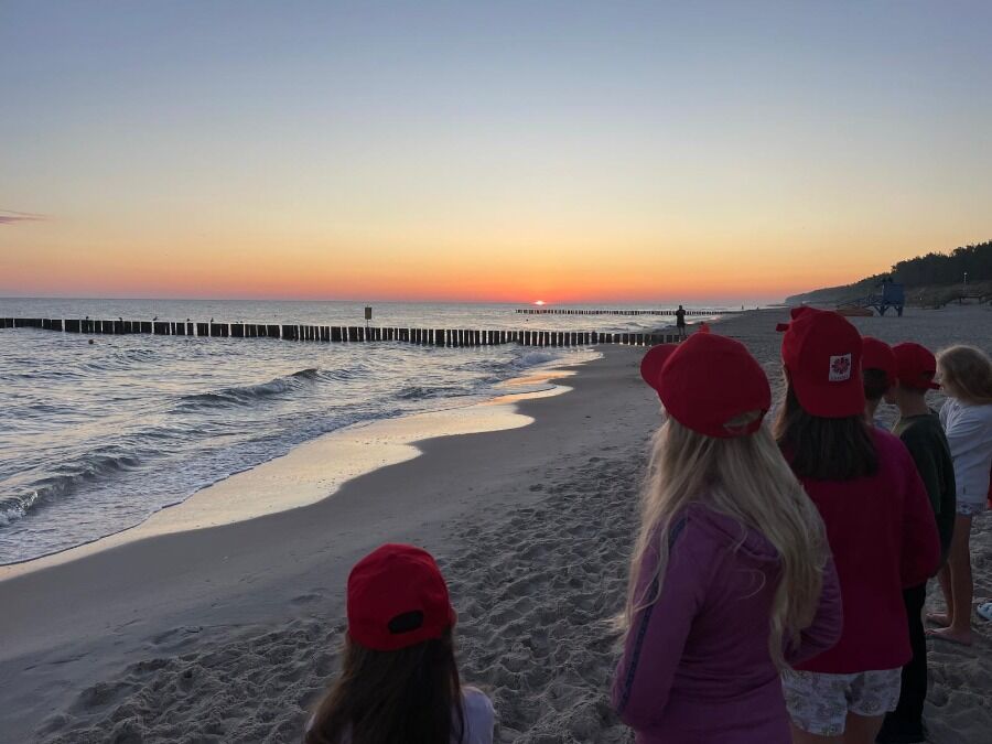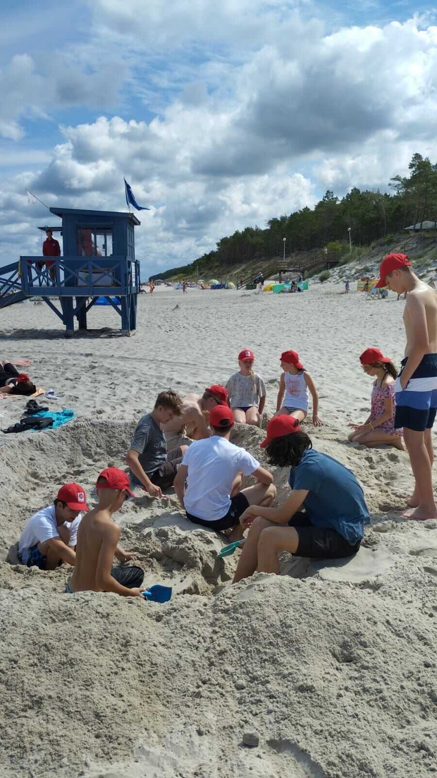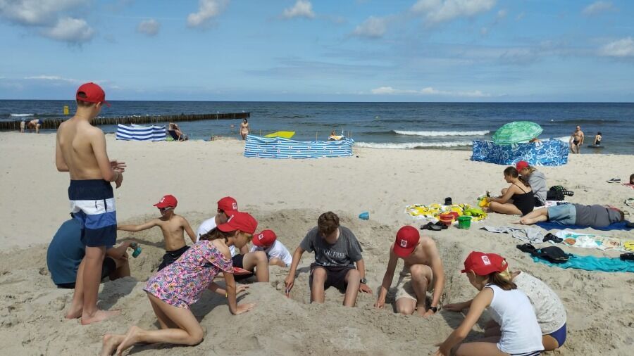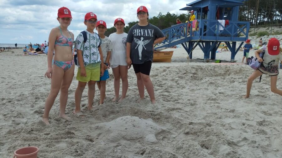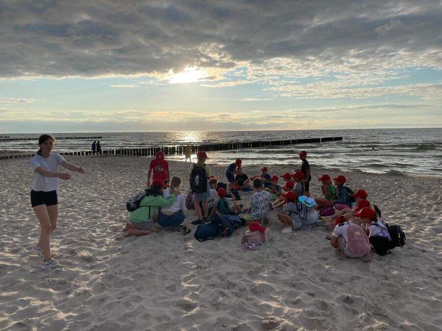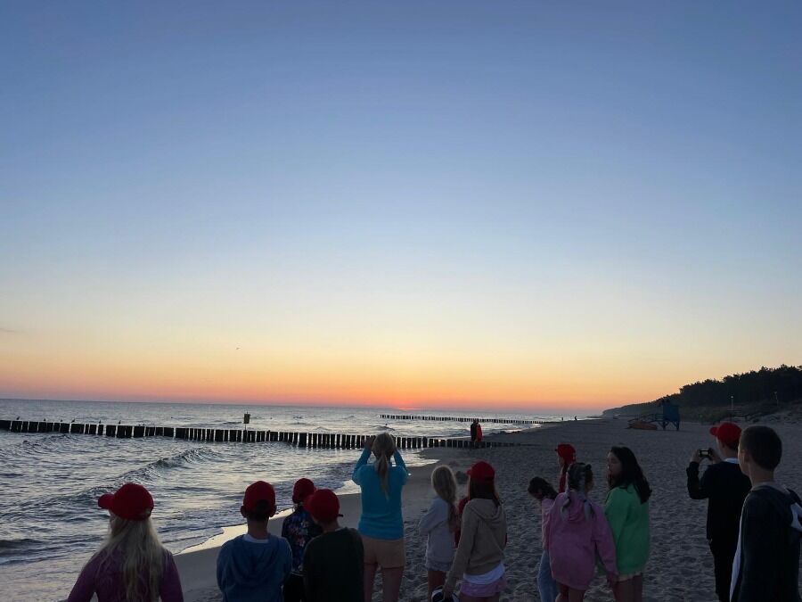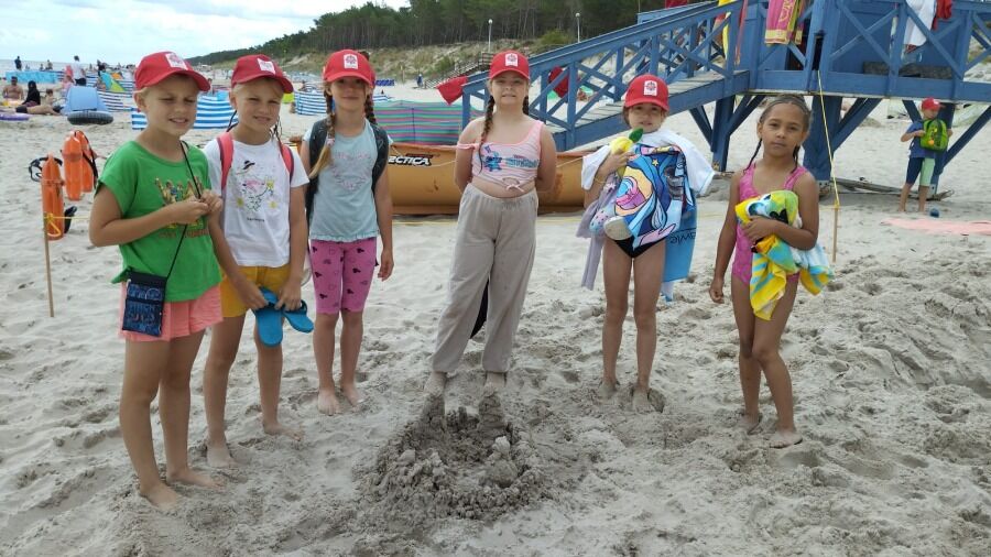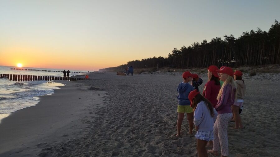 Dzisiaj nie rozpocęliśmy dnia od rozgrzewki, ale od spaceru na wschód słońca! Część grupy III i grupy II razem z wychowawczyniami udało się podziwiać to poranne przebudzenie jasności. Dopiero późnij do rannych ptaszków dołączyła reszta kolonii na tradycyjną rozgrzewkę. Po śniadanku mieliśmy czas na ośrodkowym boisku, gdzie graliśmy w siatkówkę, piłkę nożną i "ziemniaka". Następnie poszliśmy na plażę tworzyć budowle z piasku i kąpać się w Morzu, które miało dzisiaj, według tablicy informacyjnej, aż 19 stopni Celsjusza. Po obiedzie i odpoczynku wybraliśmy się na wycieczkę do Niechorza, gdzie zwiedziliśmy Latarnię Morską w Niechorzu. Ten zapierający dech w piersiach budynek, zbudowany w 1866 r., zrobił na nas wielkie wrażenie - tak samo jak widoki góry. Po powrocie kolacja, zakupy, gry planszowe i zasłużony odpoczynek na piasku, przy powoli zachodzącym słońcu. O 21 wspólnie odśpiewaliśmy Apel Jasnogórski i udaliśmy się na odpoczynek do pokojów, bo jutro czeka nas całodniowa wycieczka! :)