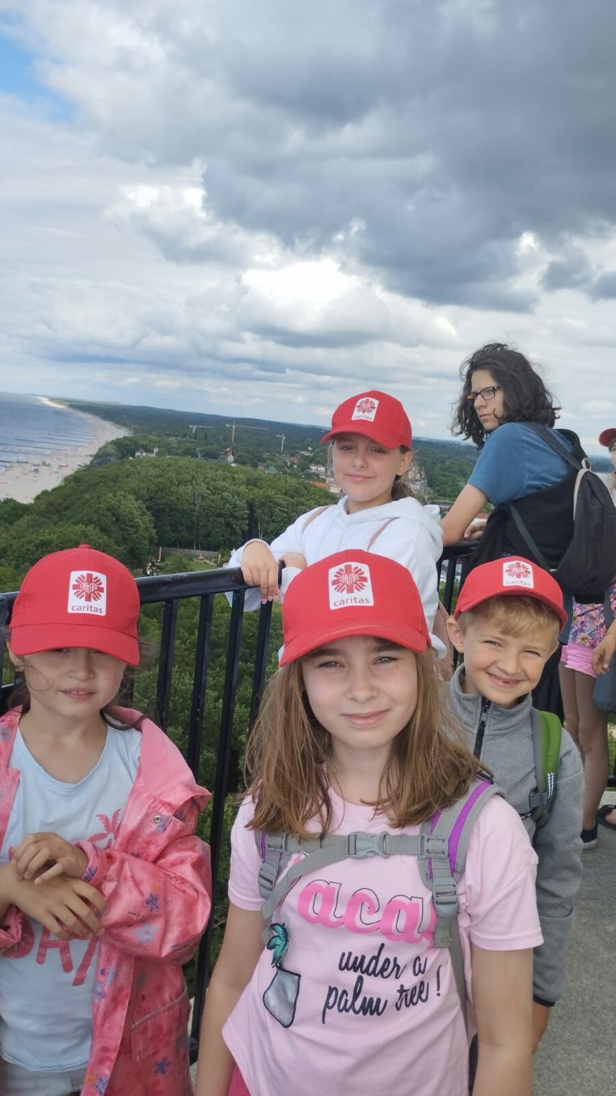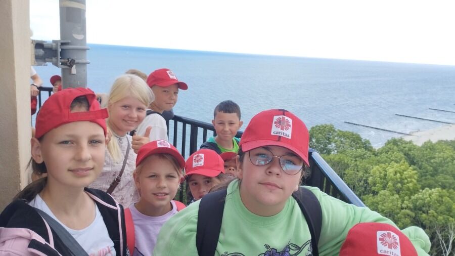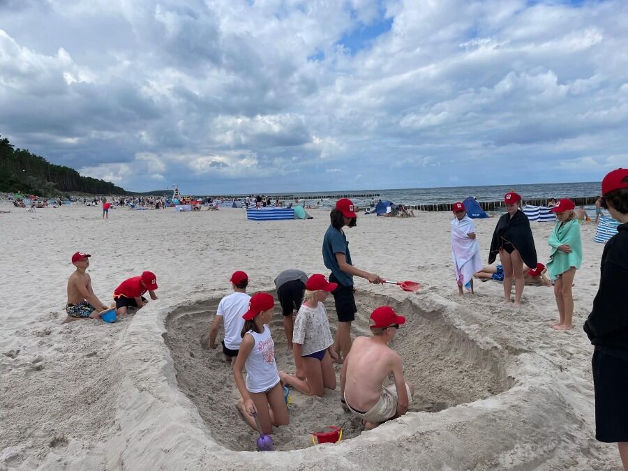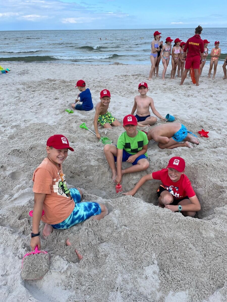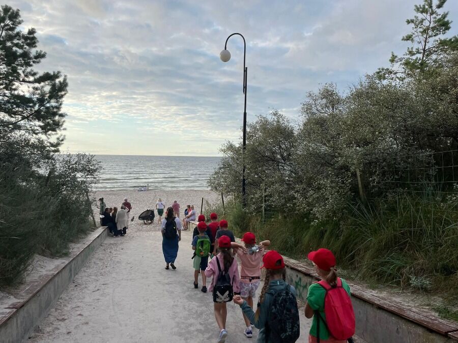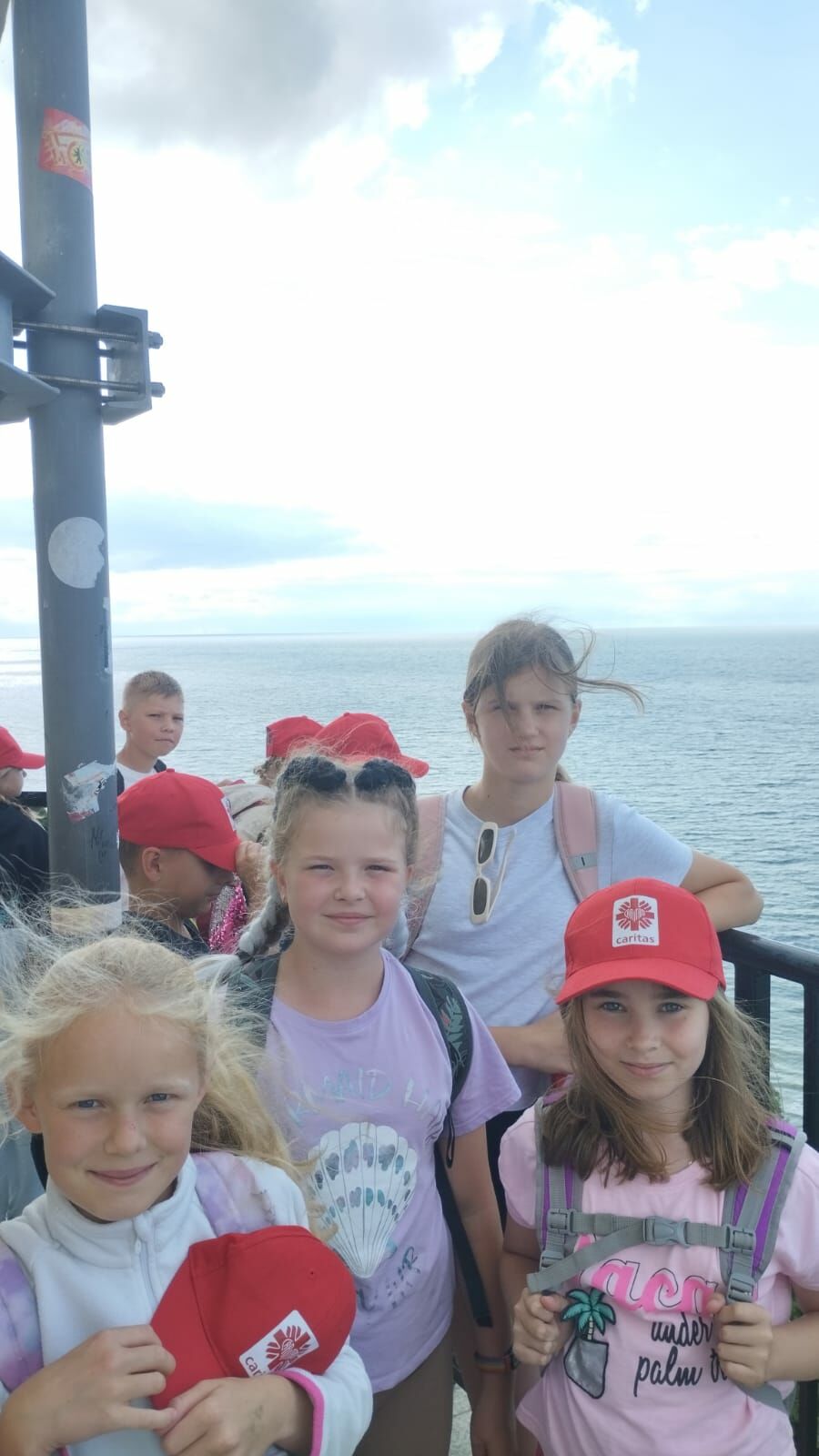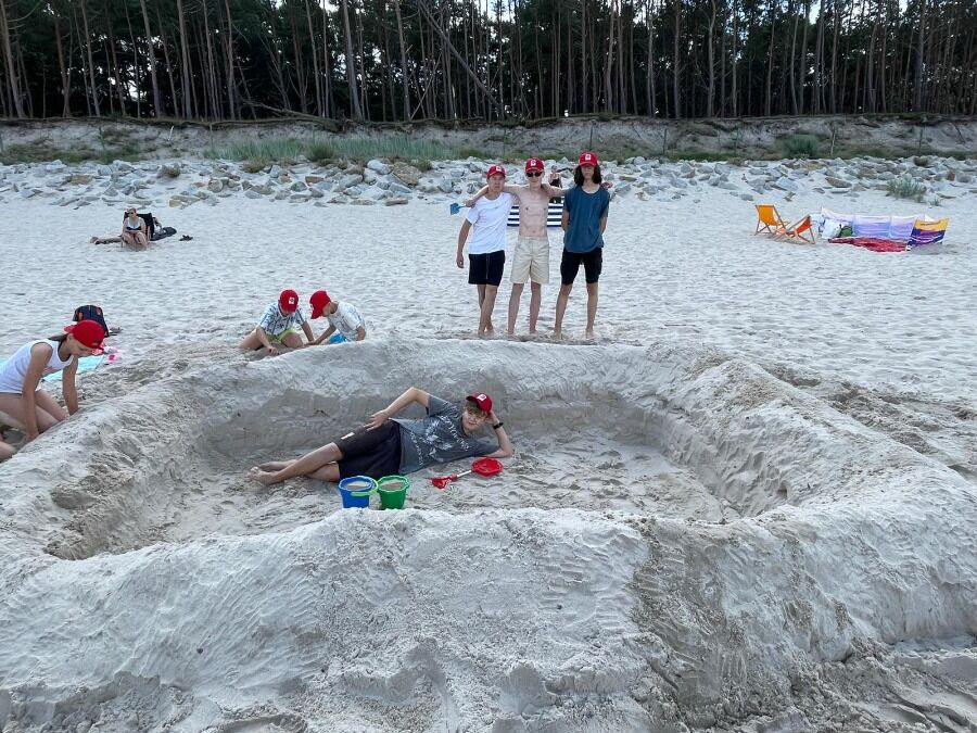 Dzisiaj nie rozpocęliśmy dnia od rozgrzewki, ale od spaceru na wschód słońca! Część grupy III i grupy II razem z wychowawczyniami udało się podziwiać to poranne przebudzenie jasności. Dopiero późnij do rannych ptaszków dołączyła reszta kolonii na tradycyjną rozgrzewkę. Po śniadanku mieliśmy czas na ośrodkowym boisku, gdzie graliśmy w siatkówkę, piłkę nożną i "ziemniaka". Następnie poszliśmy na plażę tworzyć budowle z piasku i kąpać się w Morzu, które miało dzisiaj, według tablicy informacyjnej, aż 19 stopni Celsjusza. Po obiedzie i odpoczynku wybraliśmy się na wycieczkę do Niechorza, gdzie zwiedziliśmy Latarnię Morską w Niechorzu. Ten zapierający dech w piersiach budynek, zbudowany w 1866 r., zrobił na nas wielkie wrażenie - tak samo jak widoki góry. Po powrocie kolacja, zakupy, gry planszowe i zasłużony odpoczynek na piasku, przy powoli zachodzącym słońcu. O 21 wspólnie odśpiewaliśmy Apel Jasnogórski i udaliśmy się na odpoczynek do pokojów, bo jutro czeka nas całodniowa wycieczka! :)