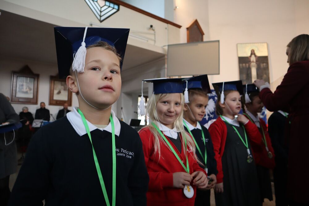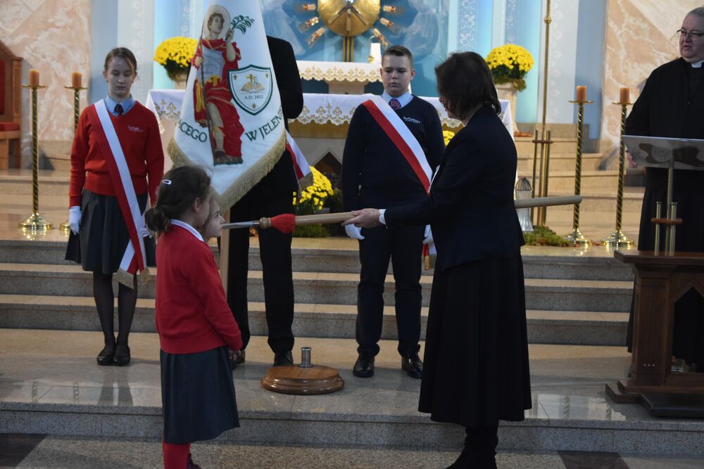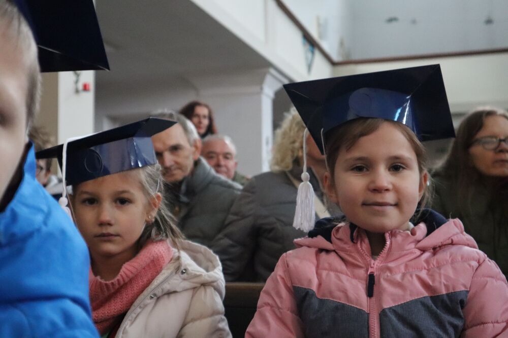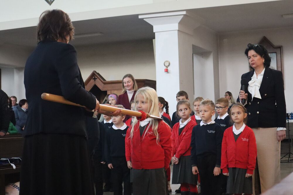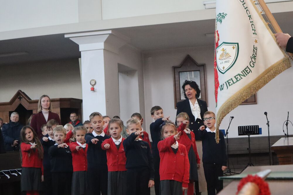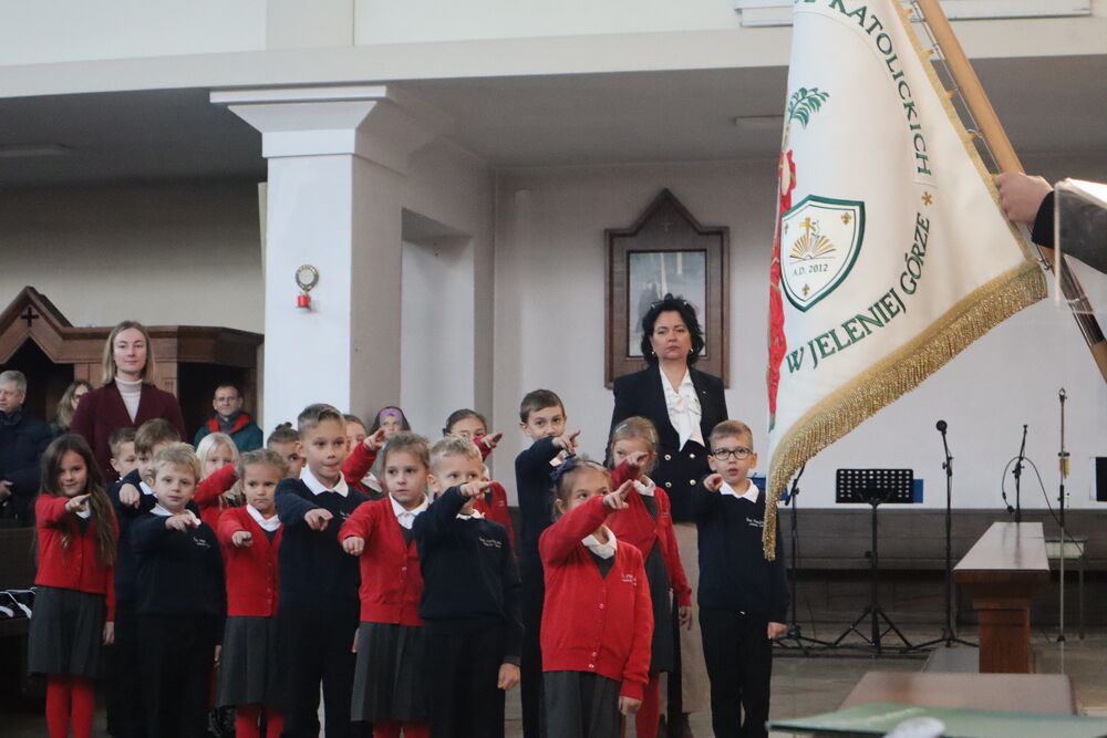 W dalszej kolejności dzieci złożyły uroczyste ślubowanie i zostali pasowani na uczniów Publicznej Katolickiej Szkoły Podstawowej u św. Pankracego w Jeleniej Górze.