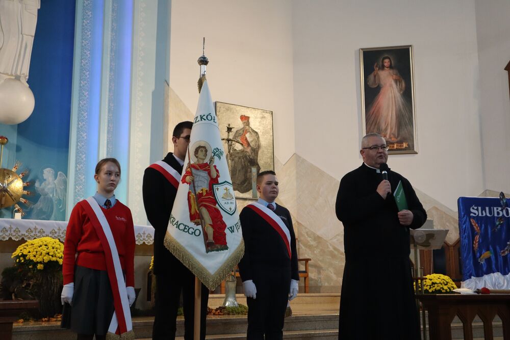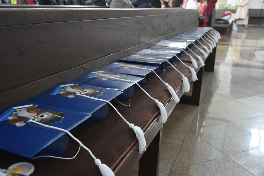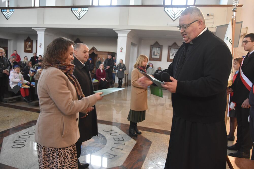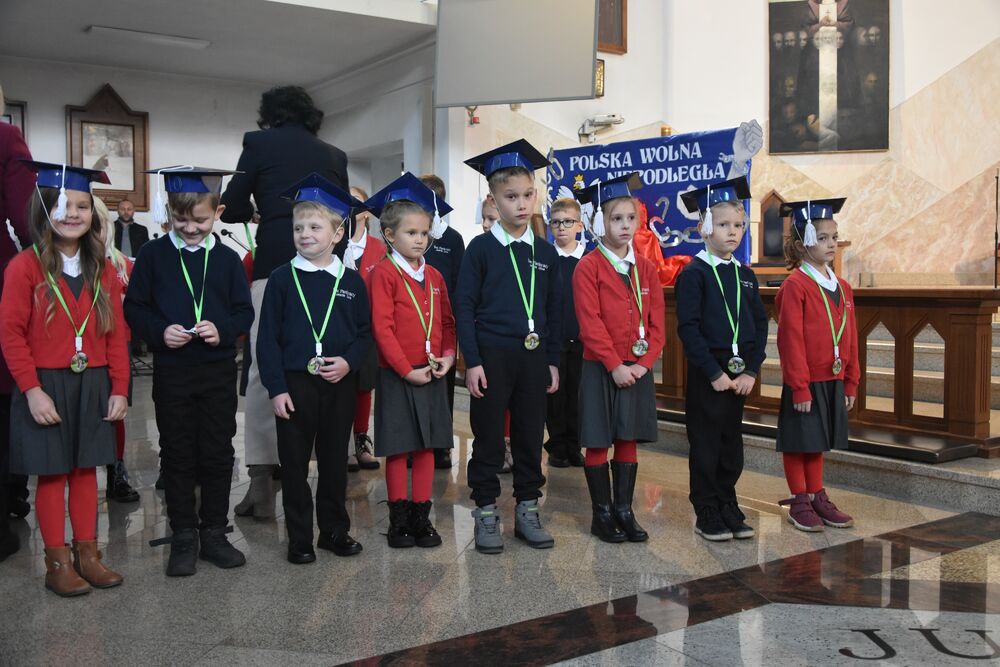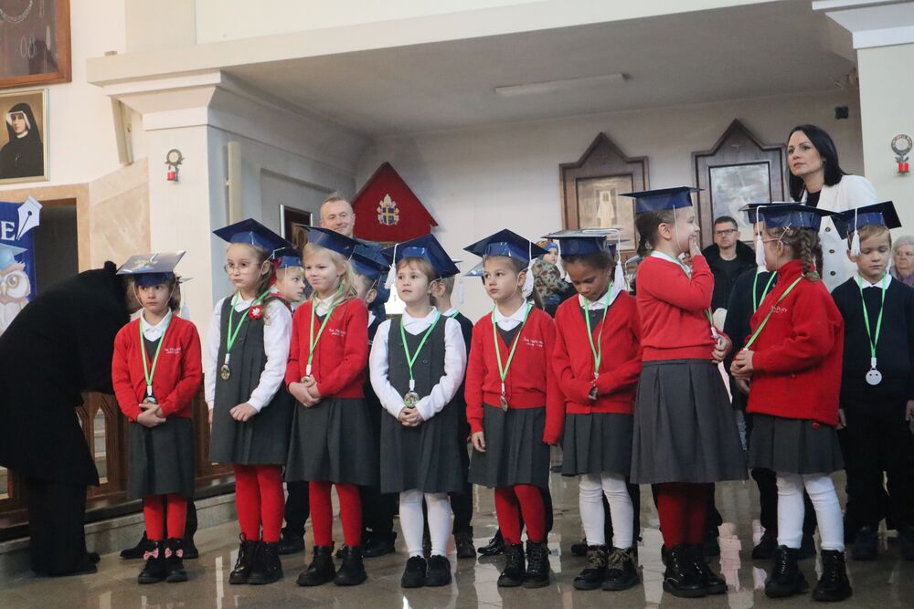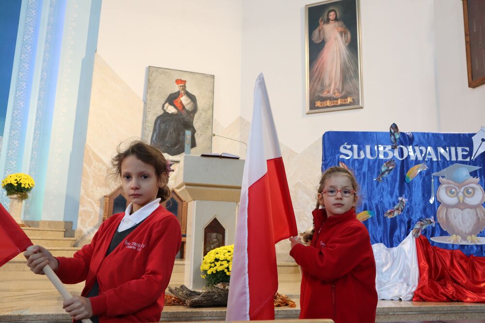 W dalszej kolejności dzieci złożyły uroczyste ślubowanie i zostali pasowani na uczniów Publicznej Katolickiej Szkoły Podstawowej u św. Pankracego w Jeleniej Górze.