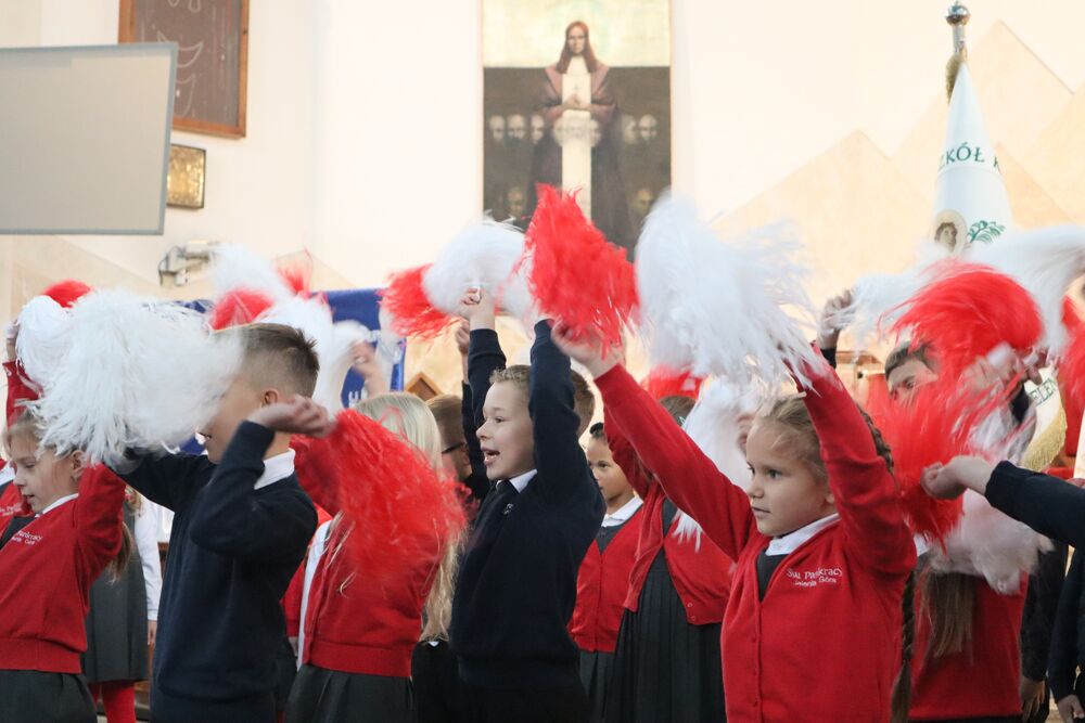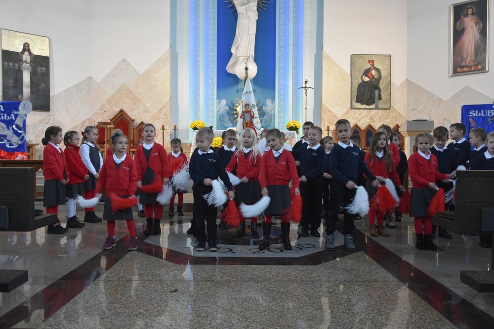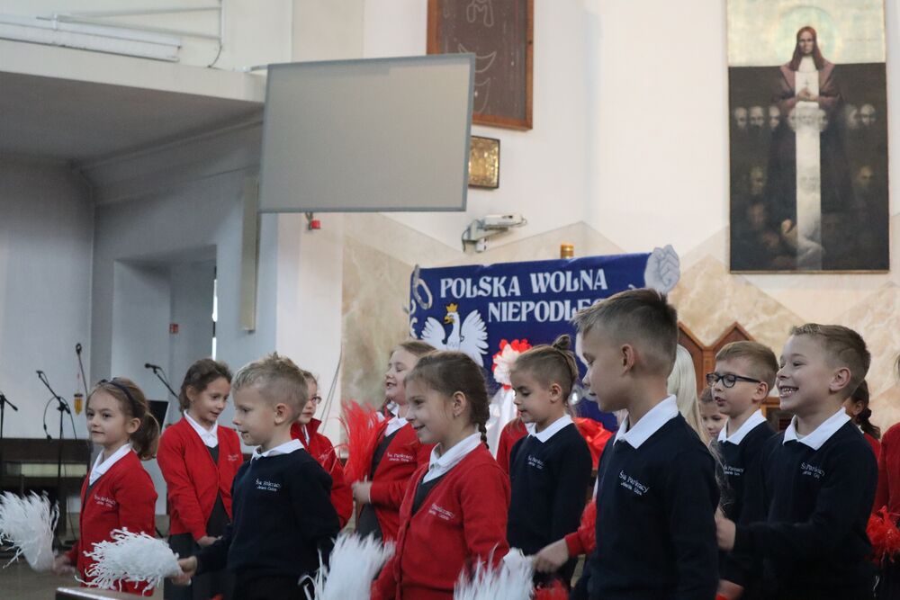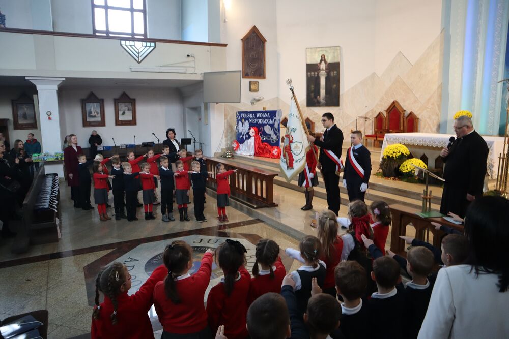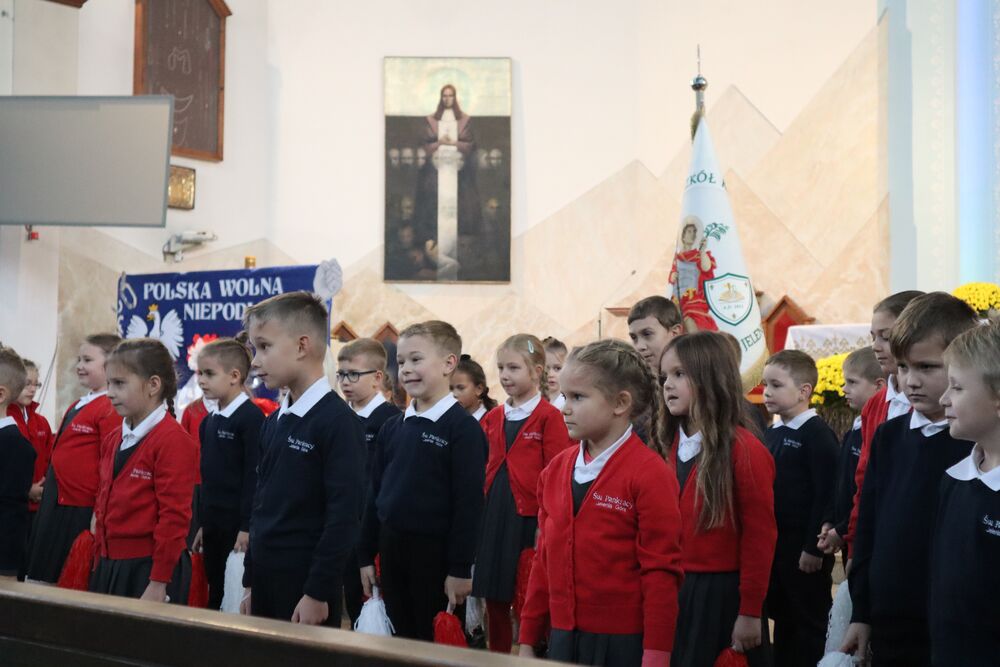 11.11.2024 o godz. 11:00 rozpoczęła się uroczyta Msza Święta w intencji naszej Ojczyzny. Po Eucharystii wszyscy odśpiewaliśmy hymn, a następnie miał miejsce patriotyczny program artystyczny przygotowany przez pierwoszklasistów.