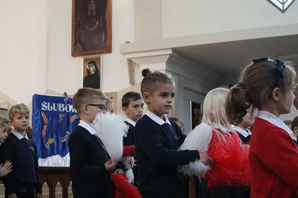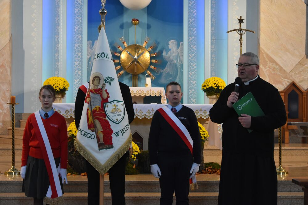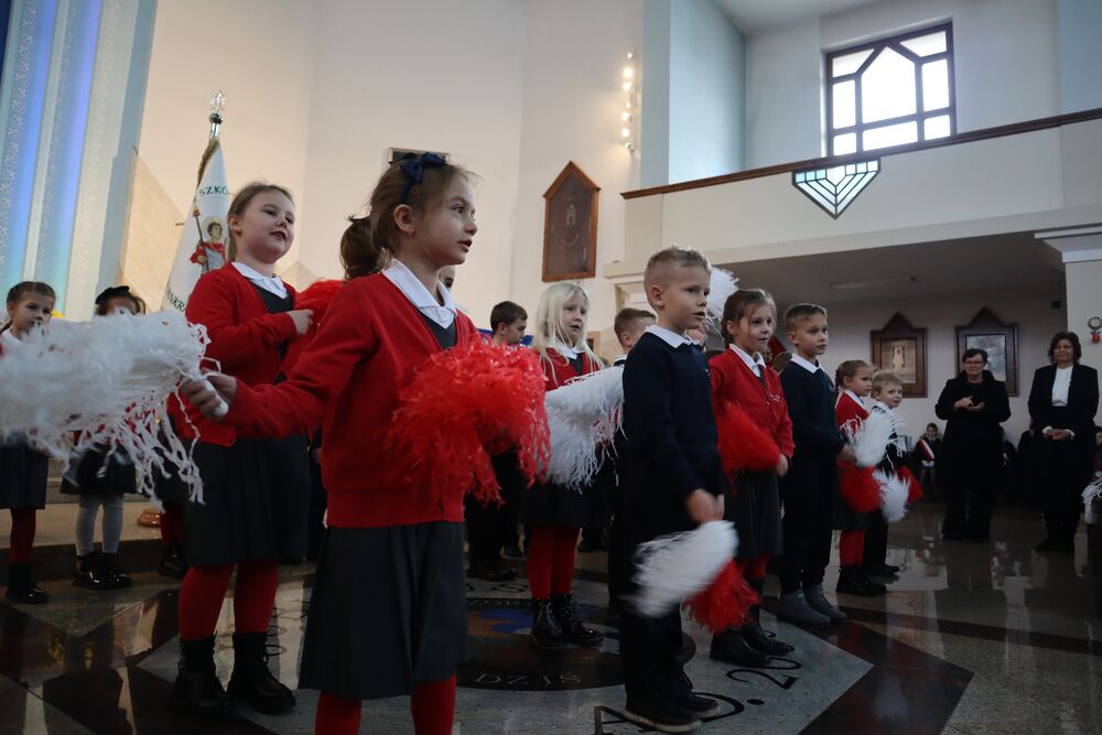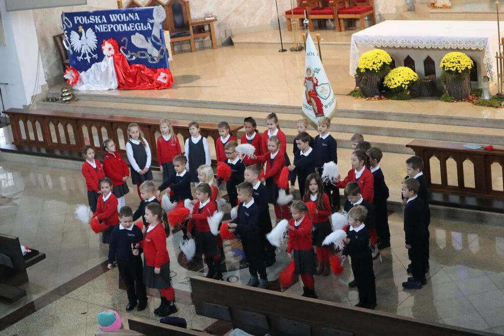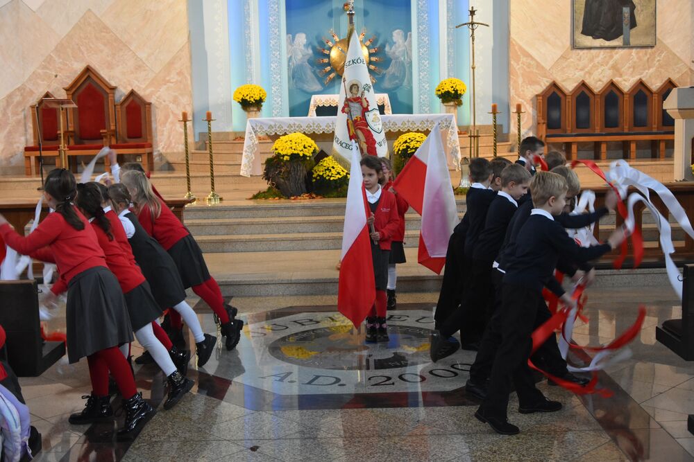 11.11.2024 o godz. 11:00 rozpoczęła się uroczyta Msza Święta w intencji naszej Ojczyzny. Po Eucharystii wszyscy odśpiewaliśmy hymn, a następnie miał miejsce patriotyczny program artystyczny przygotowany przez pierwoszklasistów.